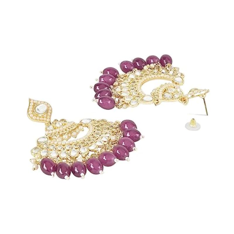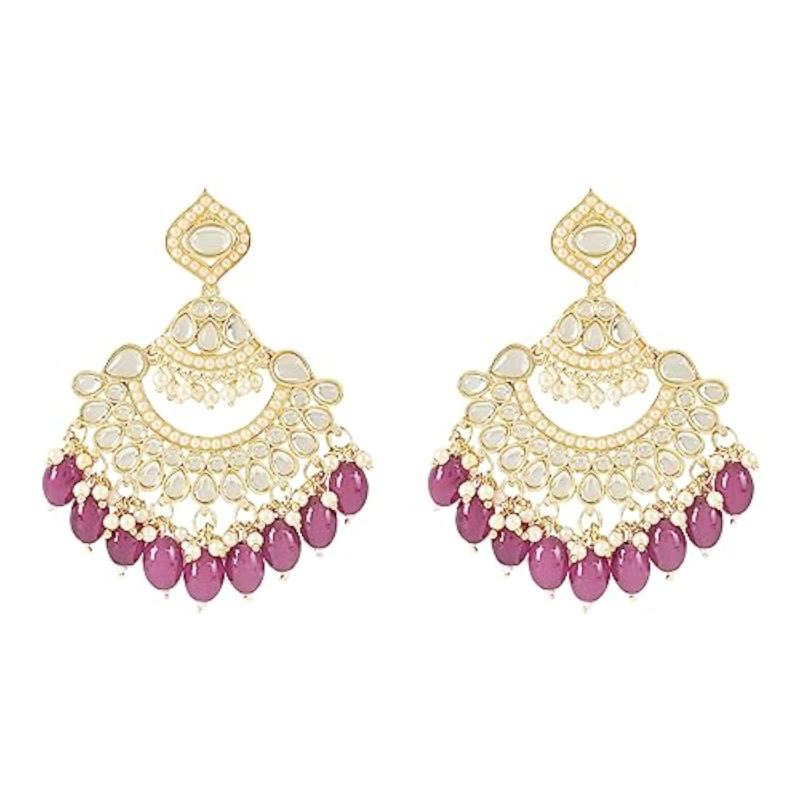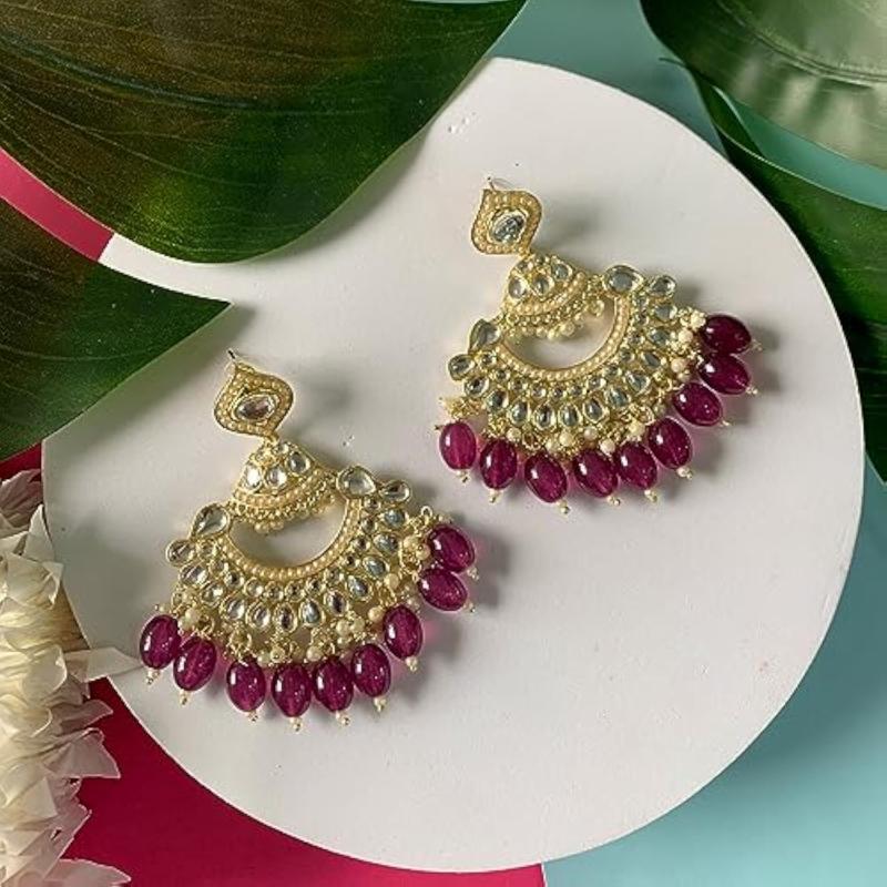 Elegant traditional Kundan earrings featuring intricate craftsmanship and pearl embellishments.