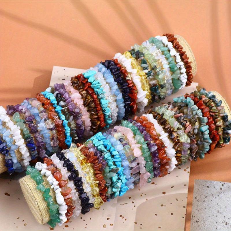 Handcrafted bracelet featuring irregular shaped natural stones with multiple colors gemstone bands. Perfect for casual attire or gifting on Mother's Day or Valentine's Day.