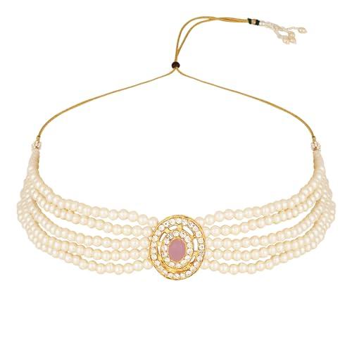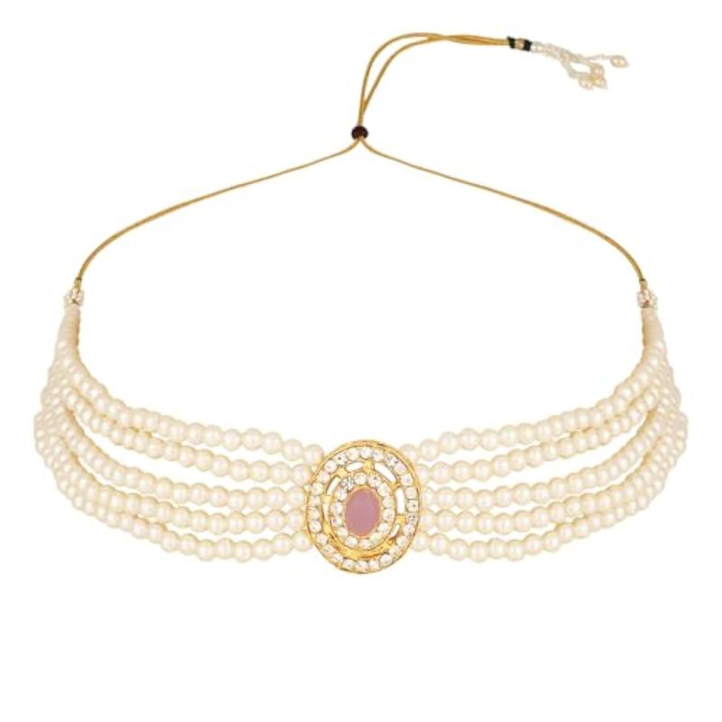 Elegant and traditional choker necklace set with beautiful stone and pearl accents, perfect for special occasions.