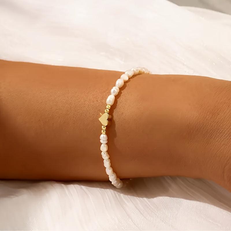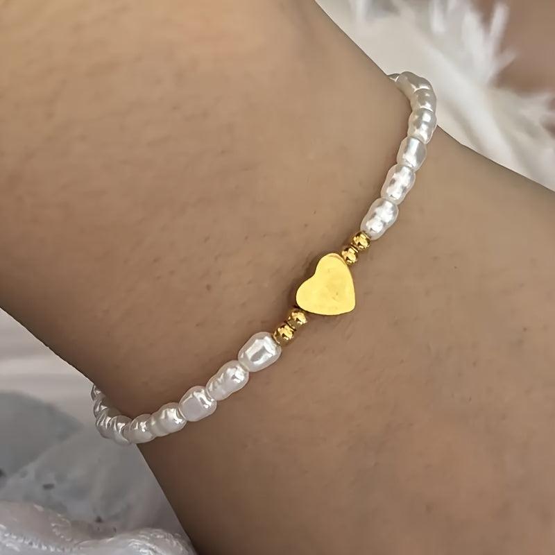This heart charm resin pearl bracelet is an ideal accessory for daily wear and parties. It is a perfect Valentine's gift and versatile all-season jewelry piece.