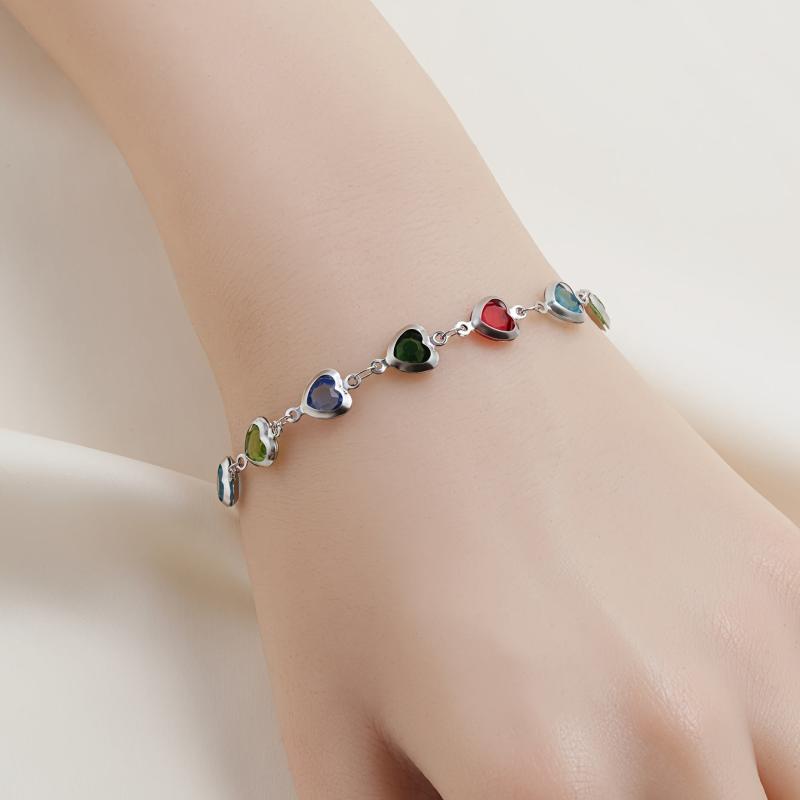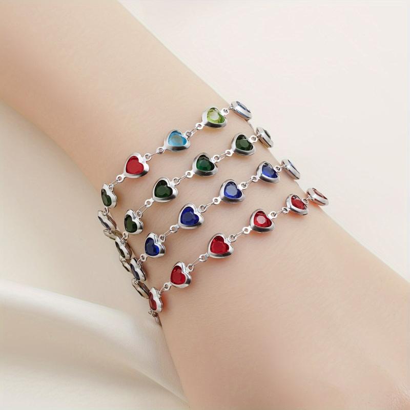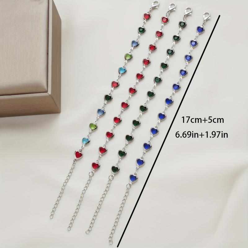Add a touch of vintage charm to your outfit with this heart-shaped glass charm bracelet. Featuring colorful stained glass with stainless steel edging, this bracelet is ideal for casual wear, vacations, and parties.