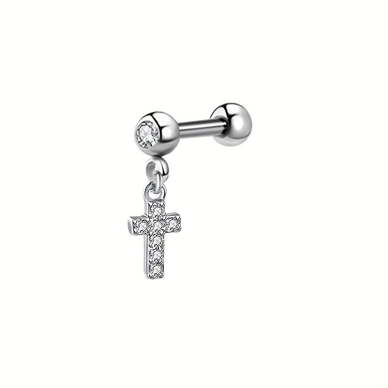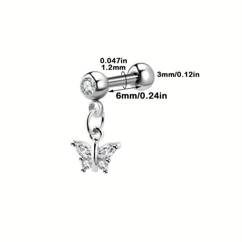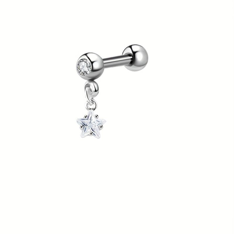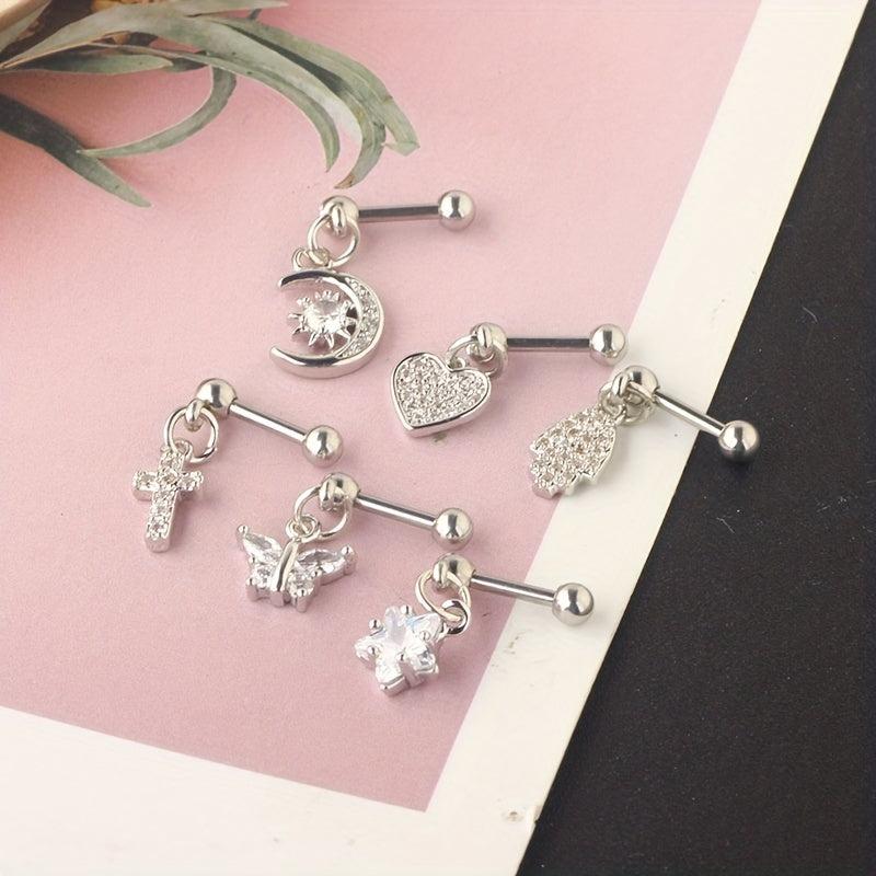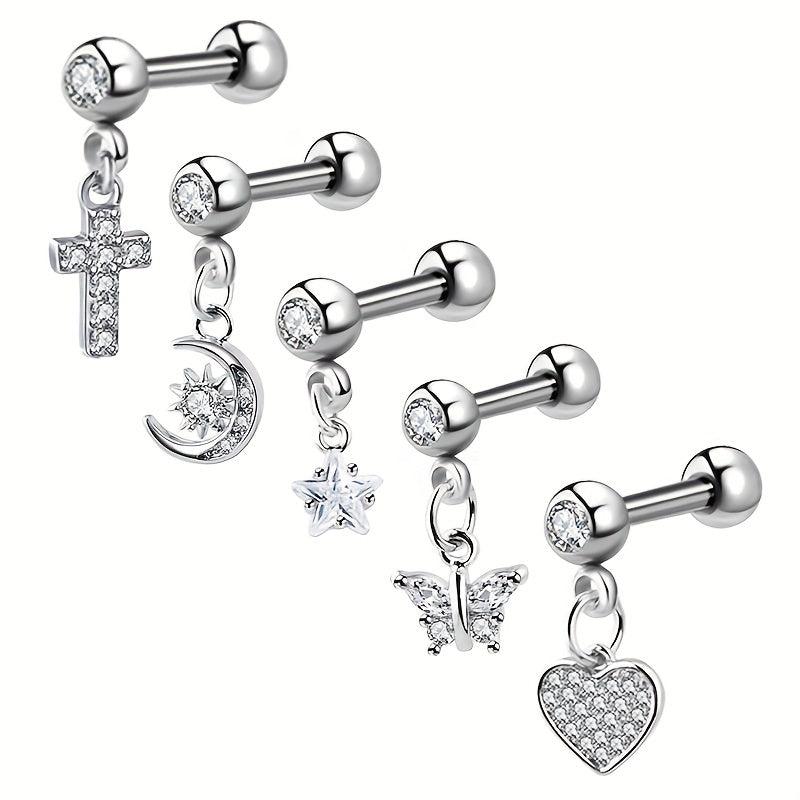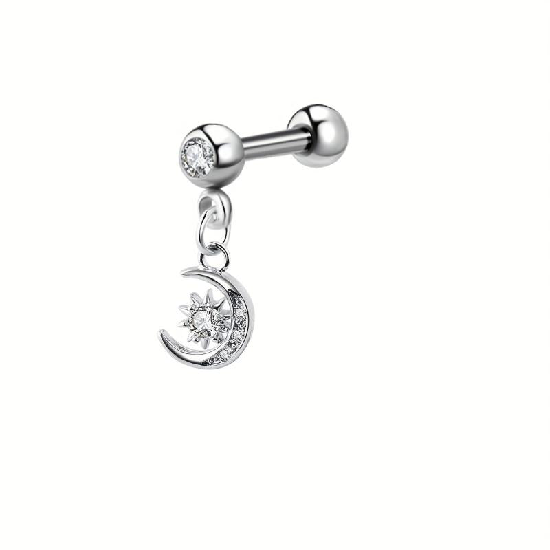 Add a touch of sparkle with these charming heart and moon stud earrings featuring synthetic zirconia. Perfect for cartilage, tragus, helix, and conch piercings, these earrings are made of stainless steel for durability and style.