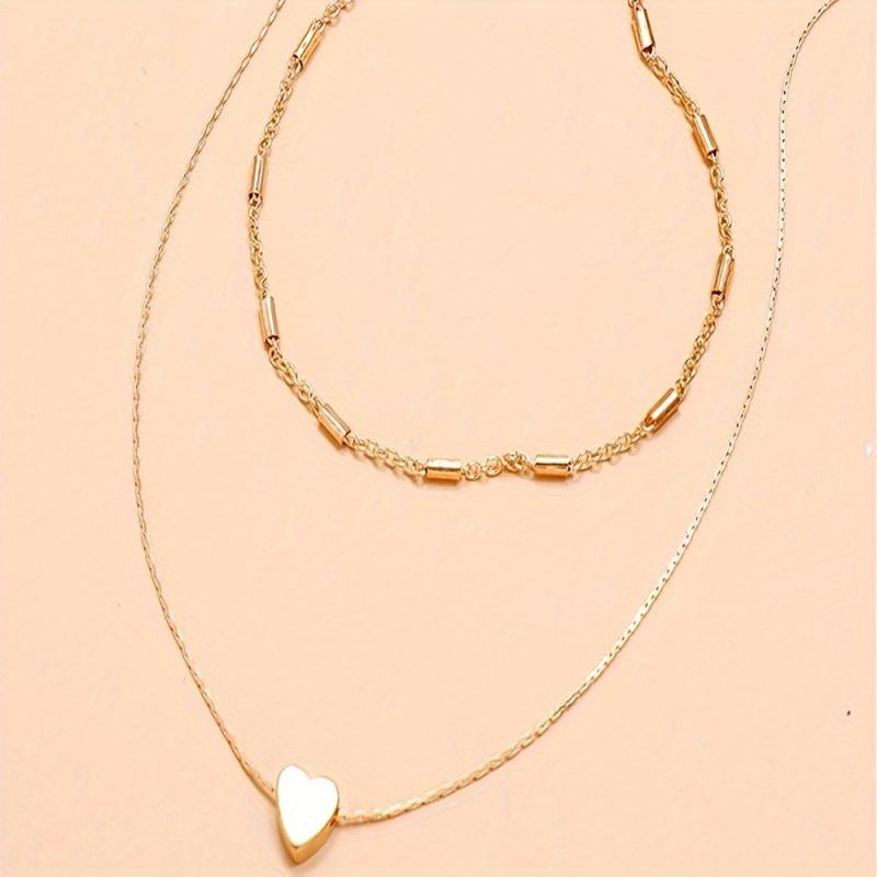 Elegant double layer choker necklace with heart pendant, perfect for daily or vacation wear throughout the year.