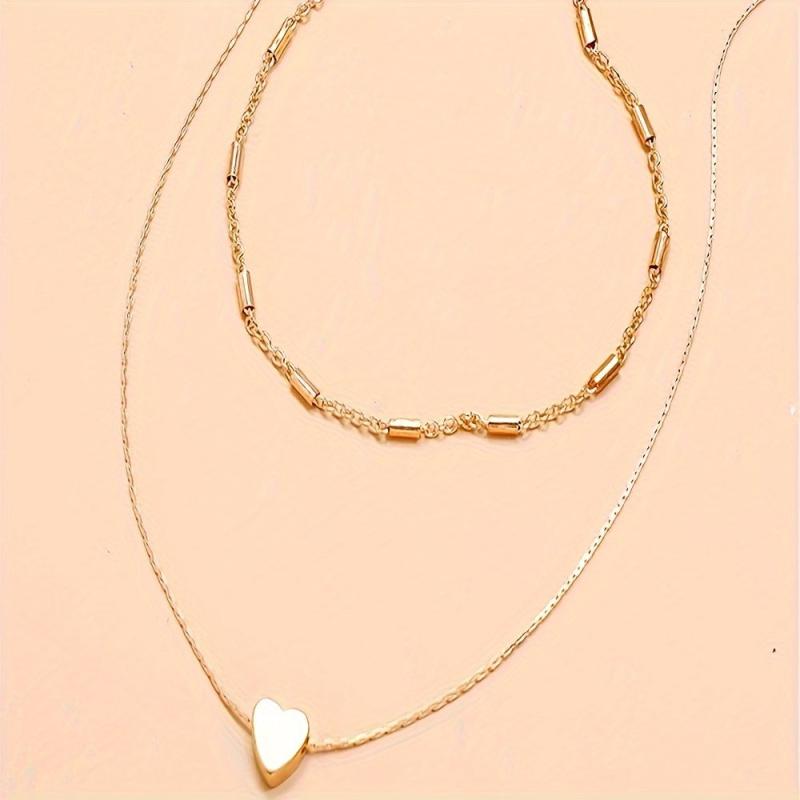 Add a touch of elegance to your everyday and vacation looks with this golden tone double layer necklace featuring heart pendant.