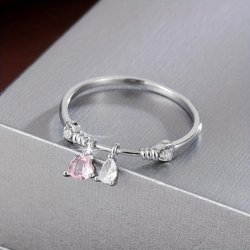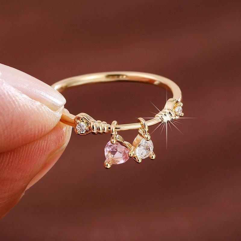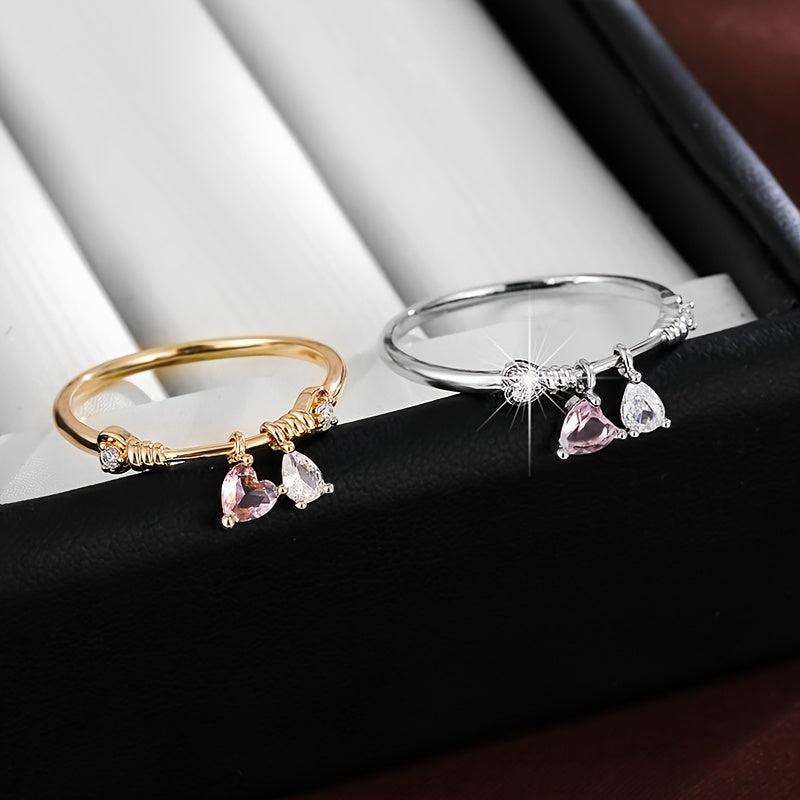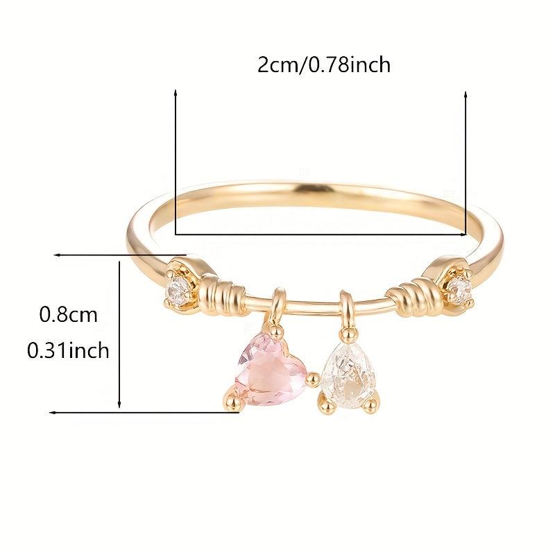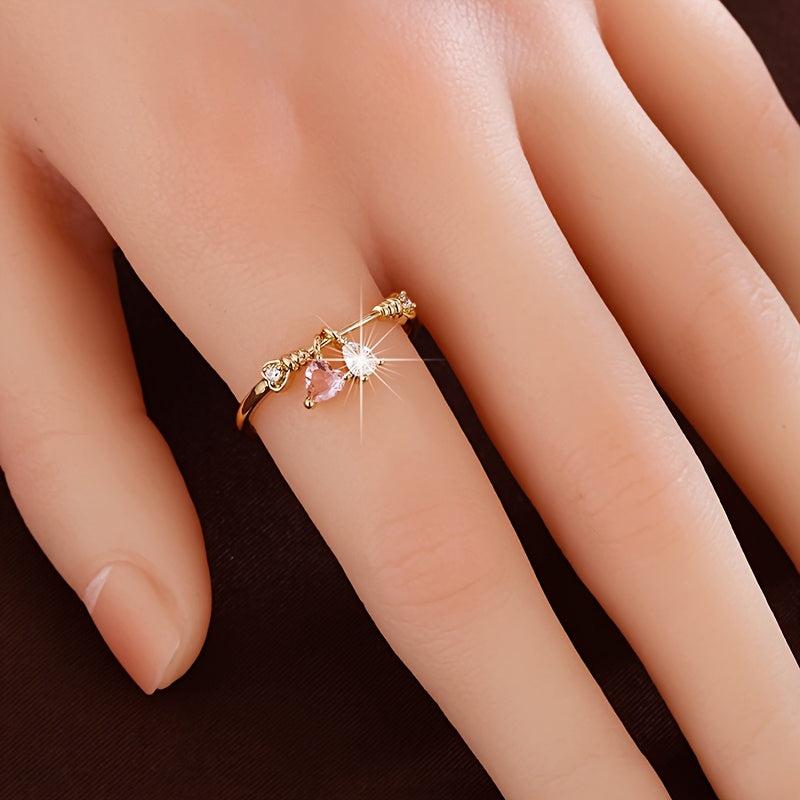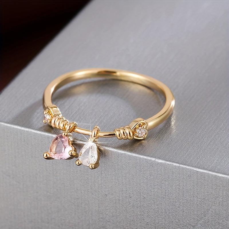 This elegant ring features a heart-shaped pendant with pink and clear synthetic zirconia stones. It is beautifully designed with golden plated twisted rope detailing, perfect for everyday wear or parties.