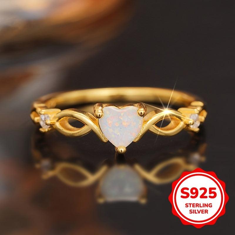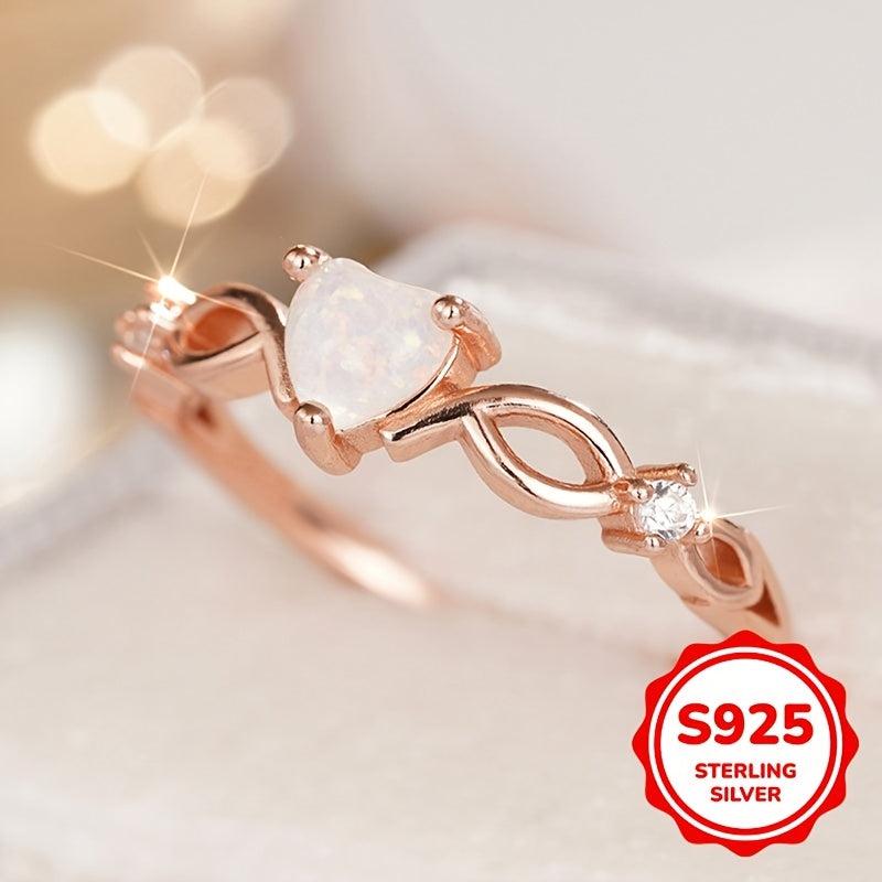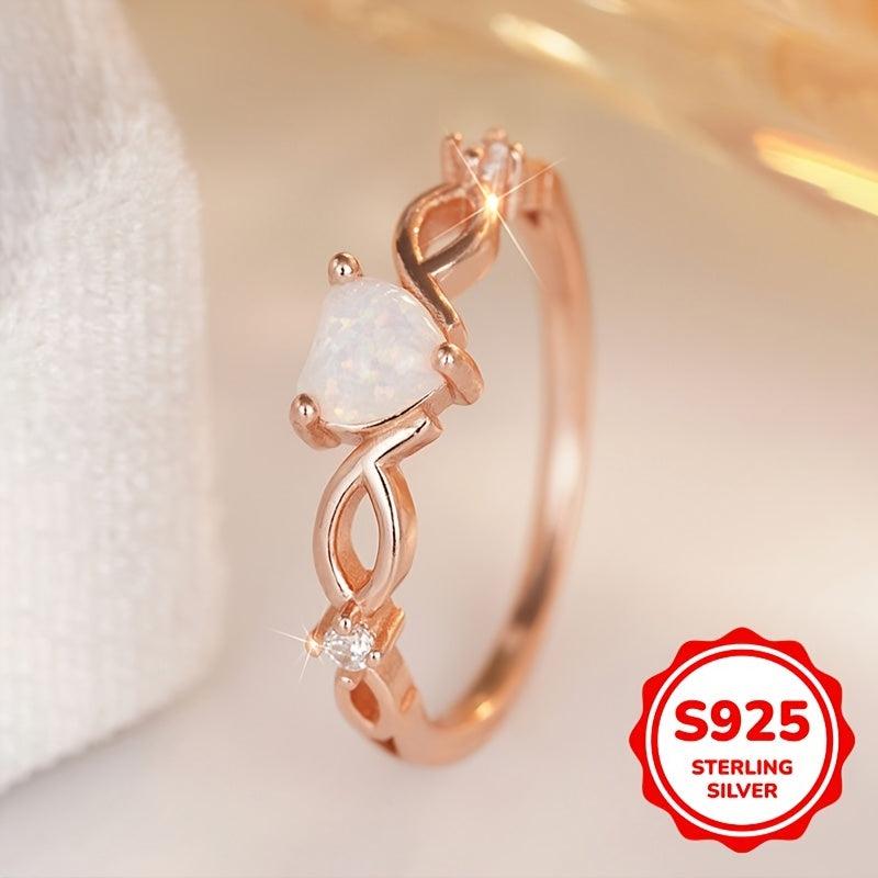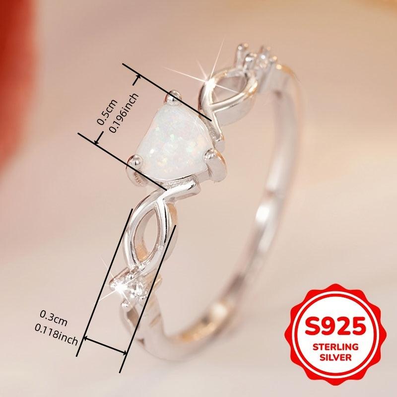 Stunning heart shaped engagement ring featuring a sparkling opal in a 3 prong setting. Crafted from S925 sterling silver and rhodium plated. Perfect for proposals and Valentine's Day.