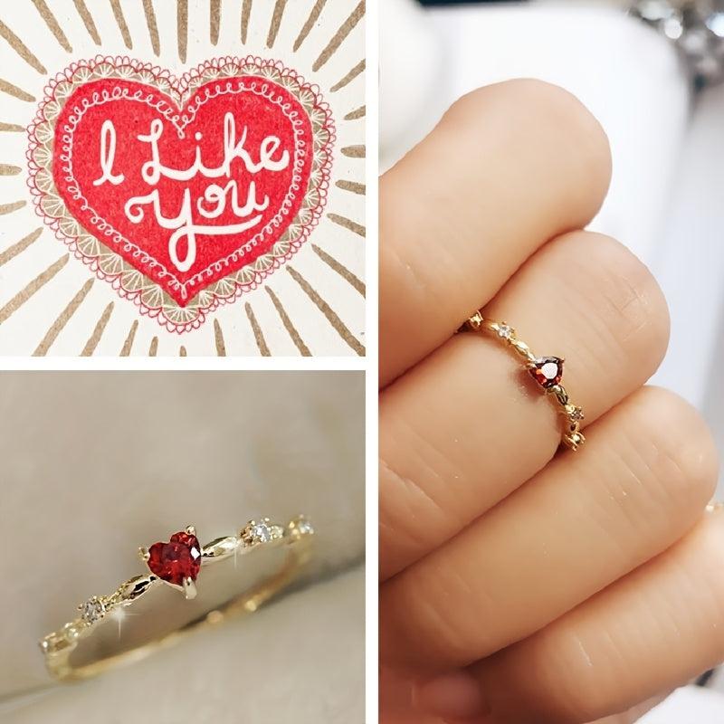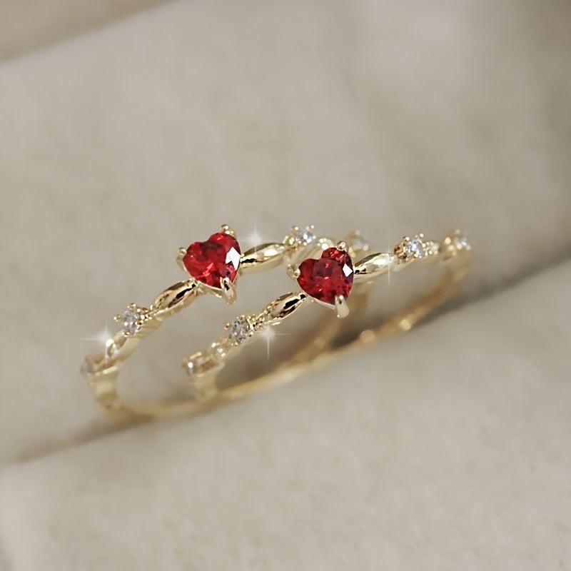 Get ready to dazzle with this stunning heart-shaped red stone engagement ring. Perfect for daily wear, weddings, or as a Valentine's Day gift.