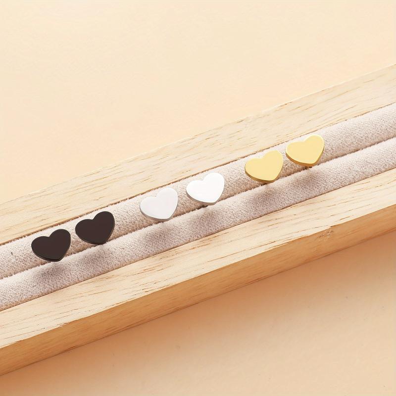 These love heart-shaped stud earrings are perfect for daily wear. Made of hypoallergenic stainless steel, they are stylish accessories that add a touch of elegance to your outfit.