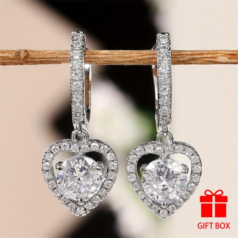 These stunning heart-shaped earrings are made with durable synthetic zirconia that sparkles beautifully. Perfect for wedding parties and everyday wear.