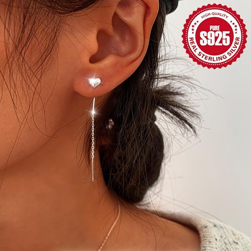 These hypoallergenic heart earrings feature long tassels with heart-shaped pendants made of high-quality S925 silver. Perfect for daily wear or special occasions.