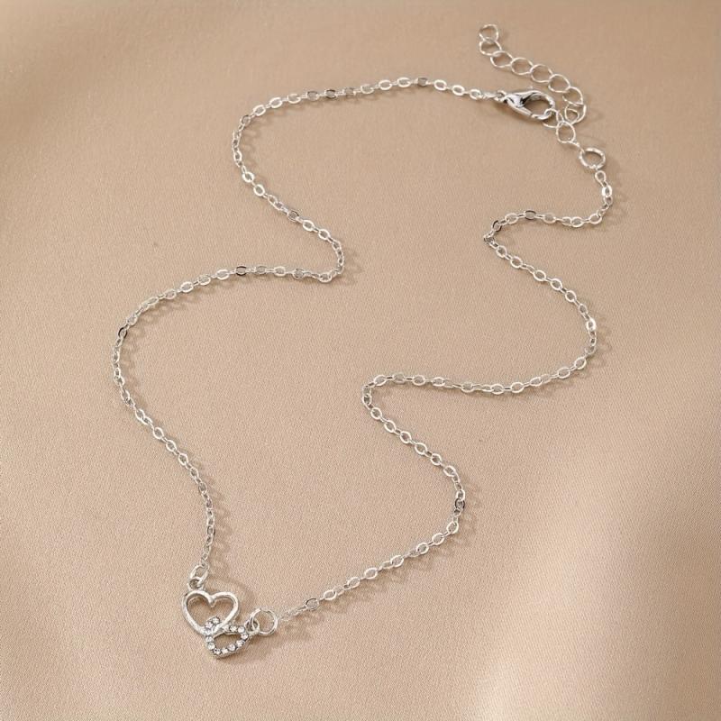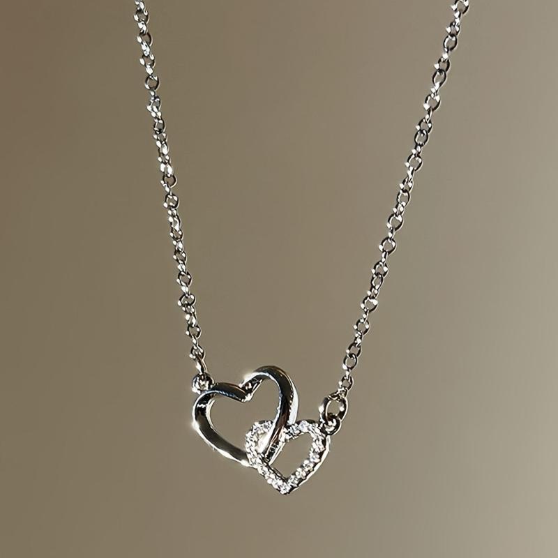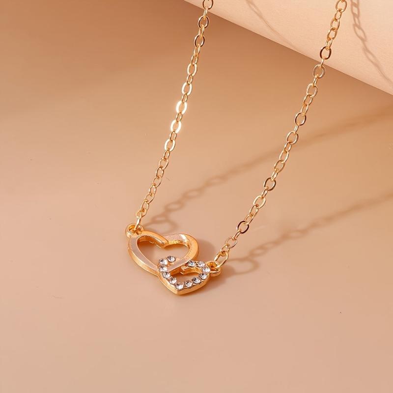 This delicate collarbone chain necklace features two interlocking hearts with sparkling crystals, making it a perfect gift for your girlfriend or wife's birthday.