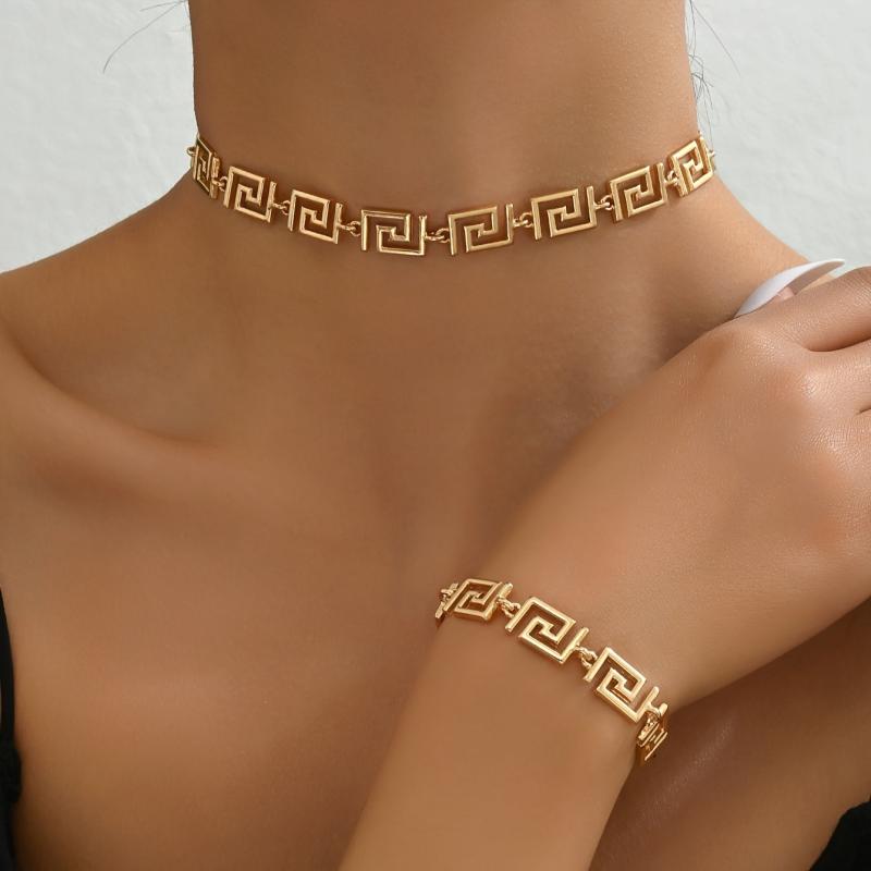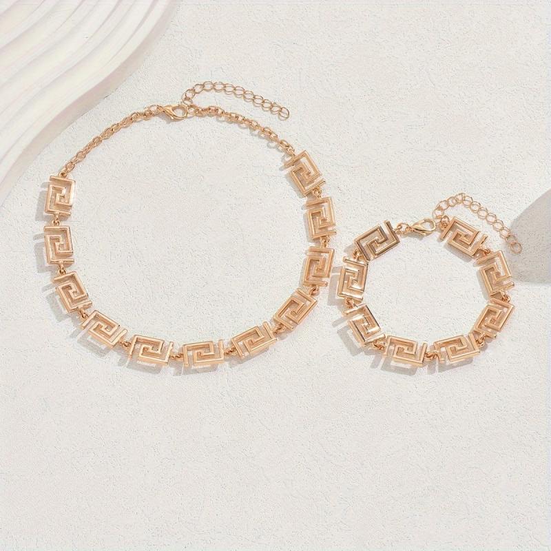 Herringbone Pattern Necklace and Bracelet Set for Women