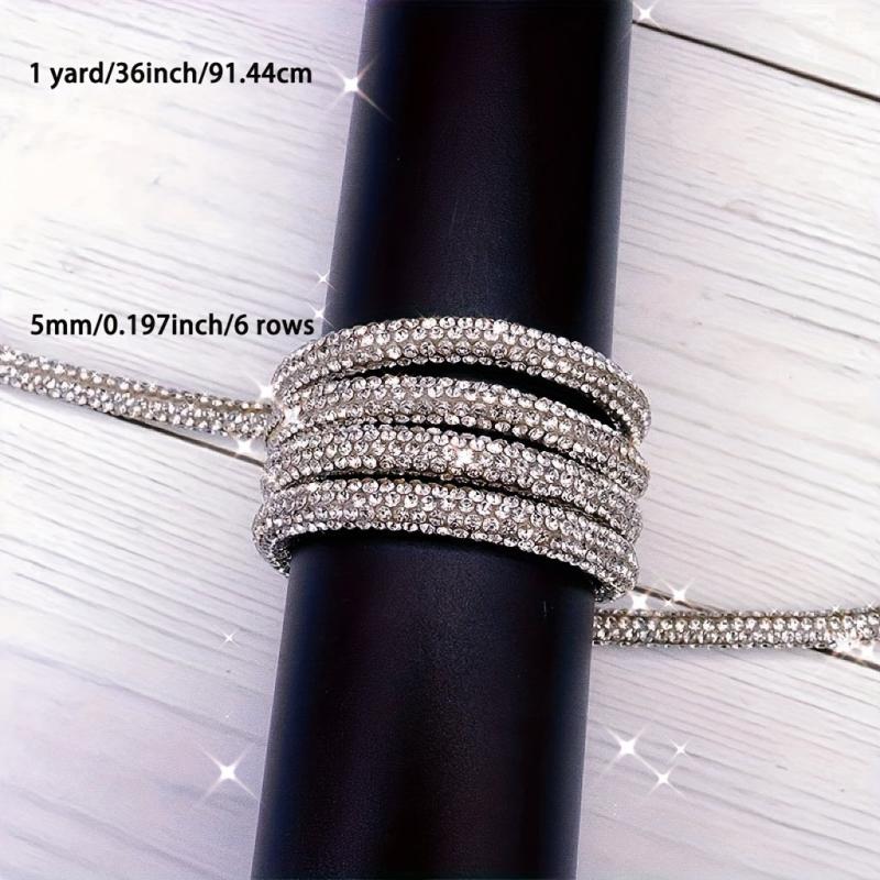 This high-quality rhinestone rope is 2.74 meters long and features 6 rows of stunning rhinestones. It is ideal for adding a touch of glamour to clothing, shoes, hats, bags, and crafts. Perfect for room decoration!