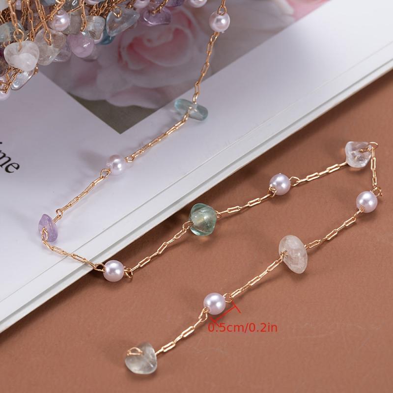 Get creative with this 1 meter long copper chain featuring artificial irregular crystals and golden tone beaded loose chain. Perfect for crafting bracelets and more.