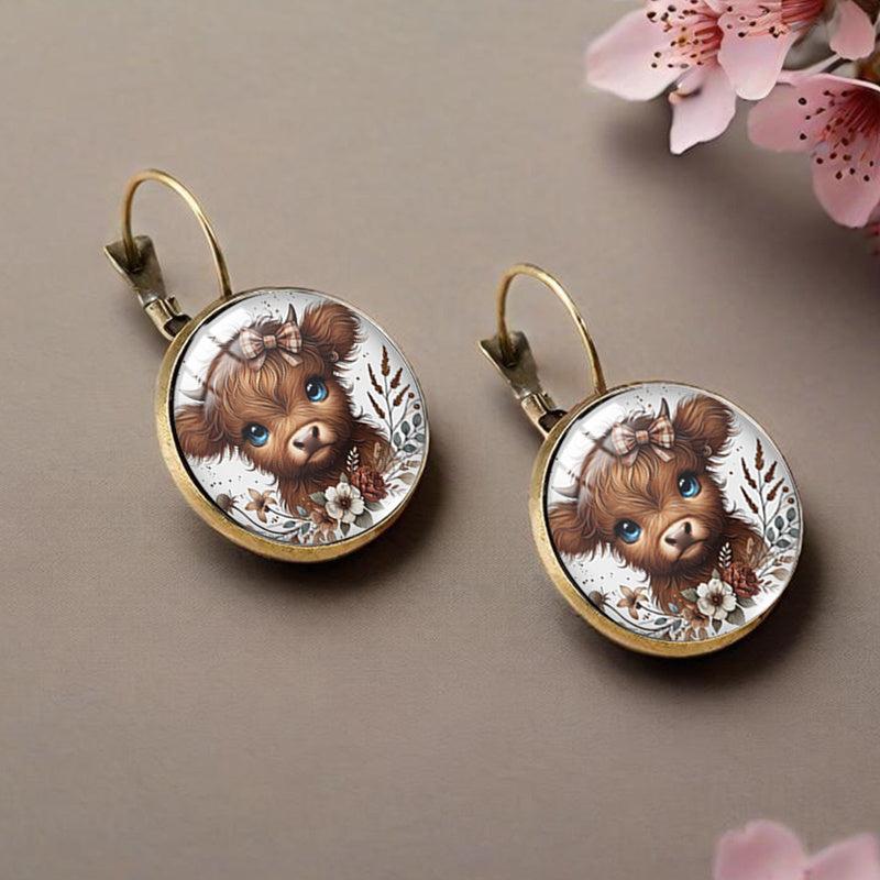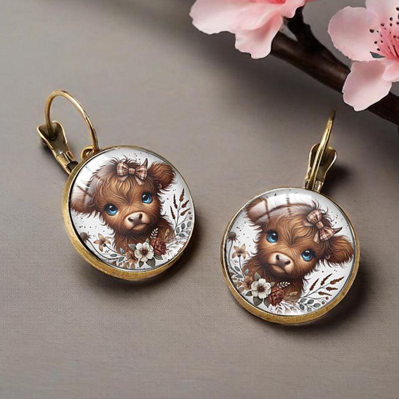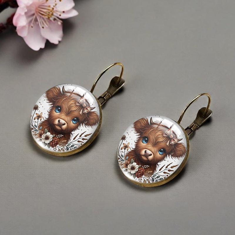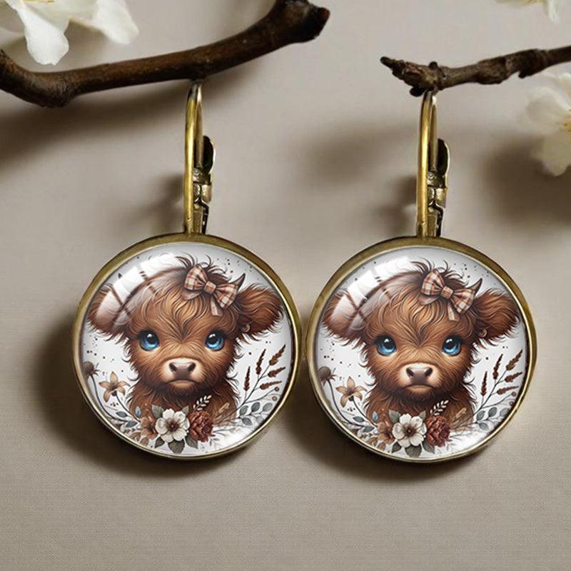 Add a touch of bohemian flair to your everyday or party wear with these Highland Cow earrings. The unique design features round glass studs in a vintage bronze frame, making them a stylish and eye-catching addition to any outfit. These earrings also make a great gift for women who love animal-inspired jewelry.