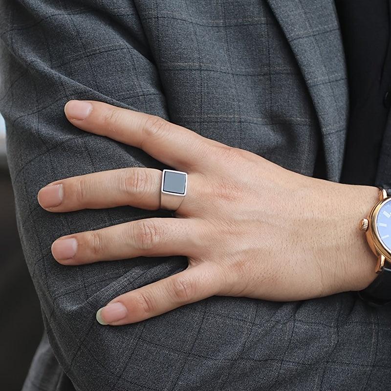Make a bold statement with this hip hop-inspired square ring in a sleek silvery tone.