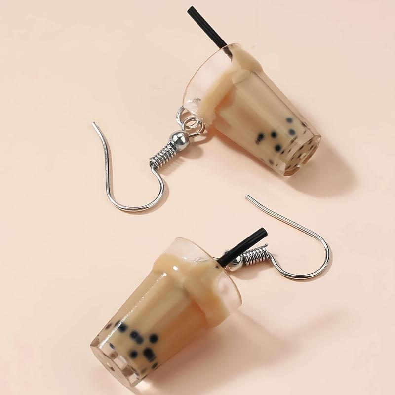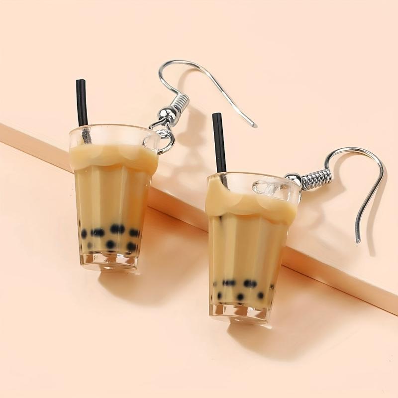 Stay trendy with these fashionable cross-border pearl milk tea ear hook earrings designed for women. These earrings are perfect for those who love the Ins style and want to add a unique touch to their ear accessories collection.