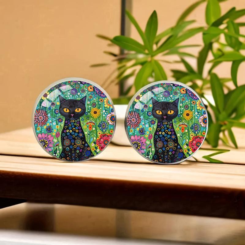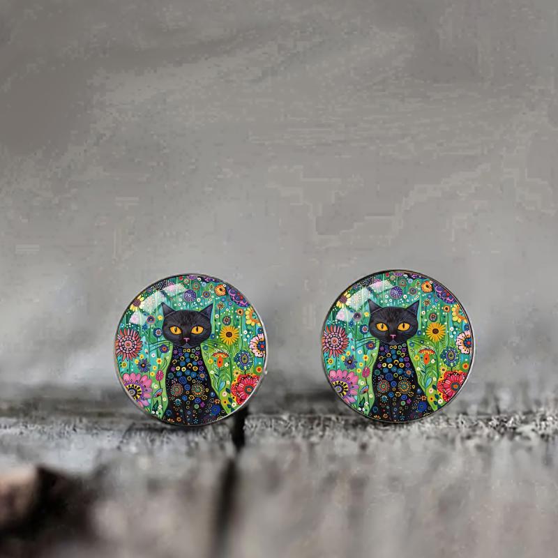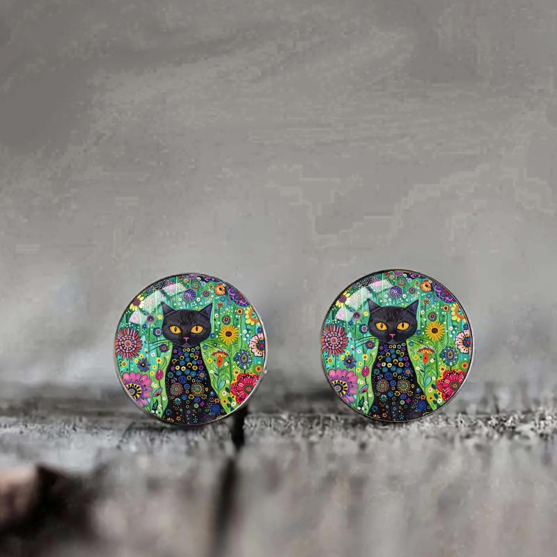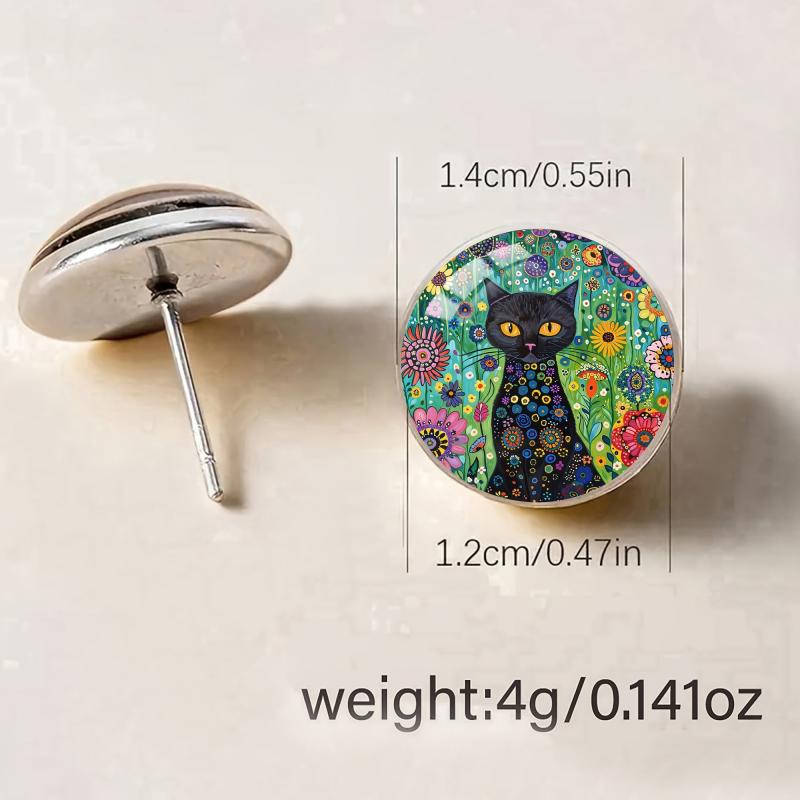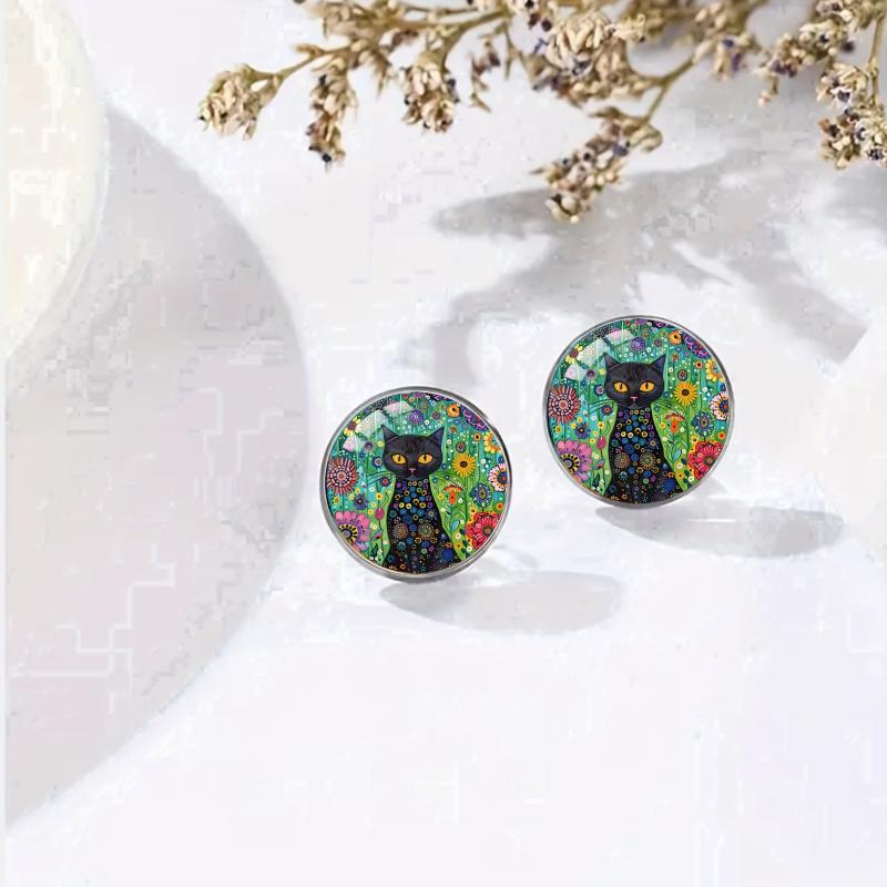 These retro cat and floral earrings are made from hypoallergenic 316 stainless steel, perfect for both women and men. They feature a colorful animal theme and are ideal for parties, vacations, and everyday wear.