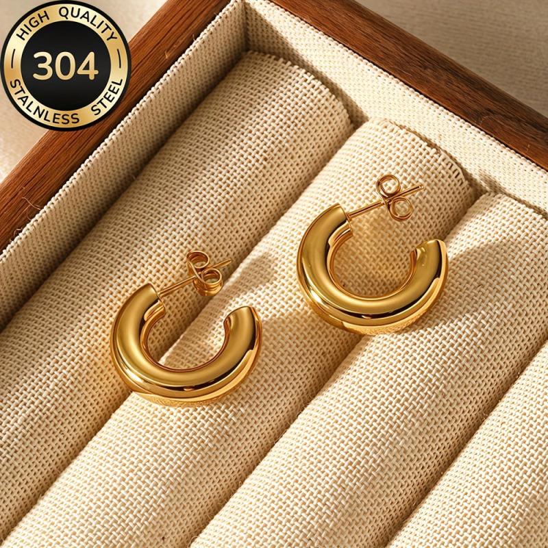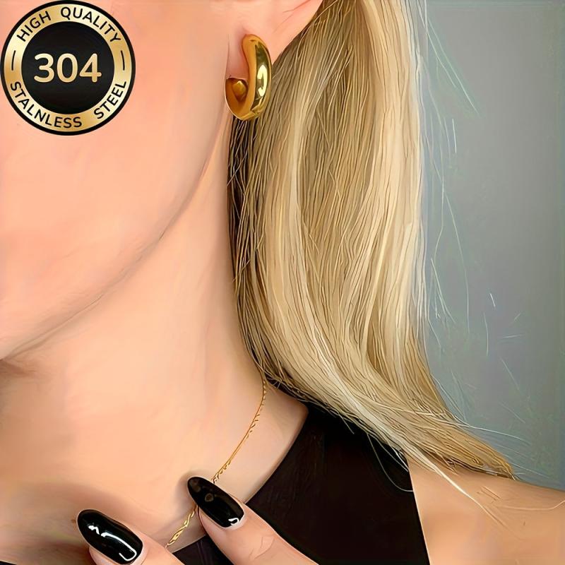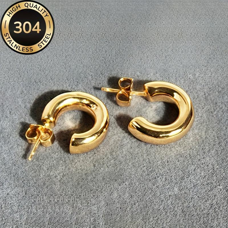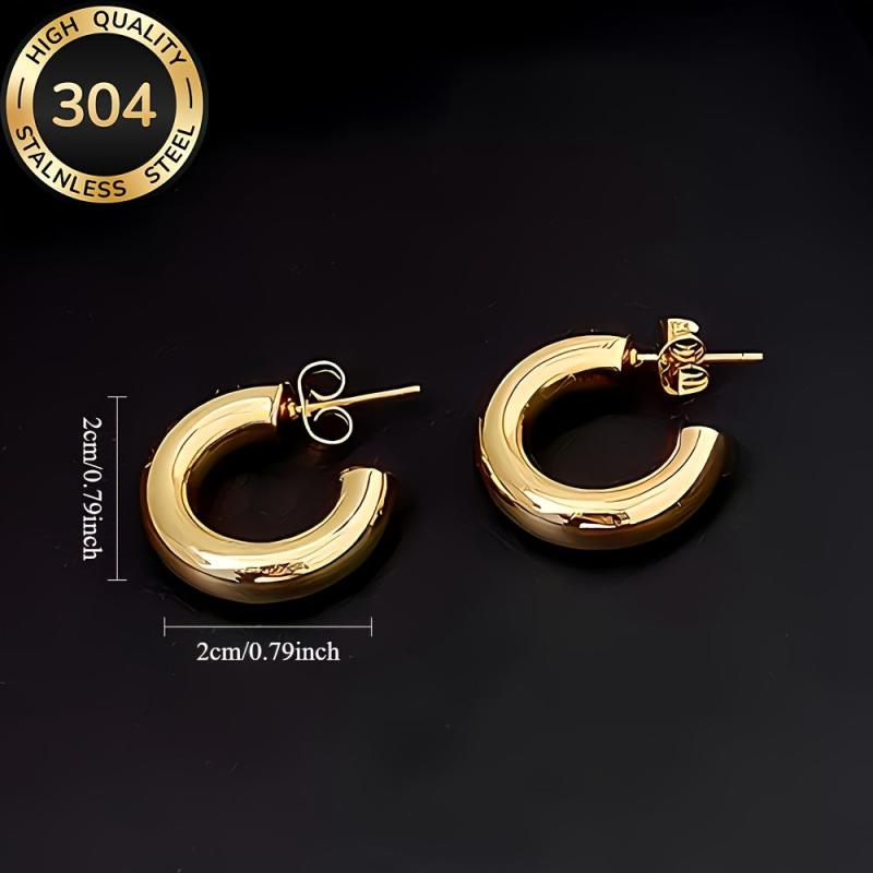 Stay stylish and comfortable with these 18K gold plated hoop earrings that are perfect for daily wear. Crafted from hypoallergenic stainless steel, they are fade resistant and versatile.