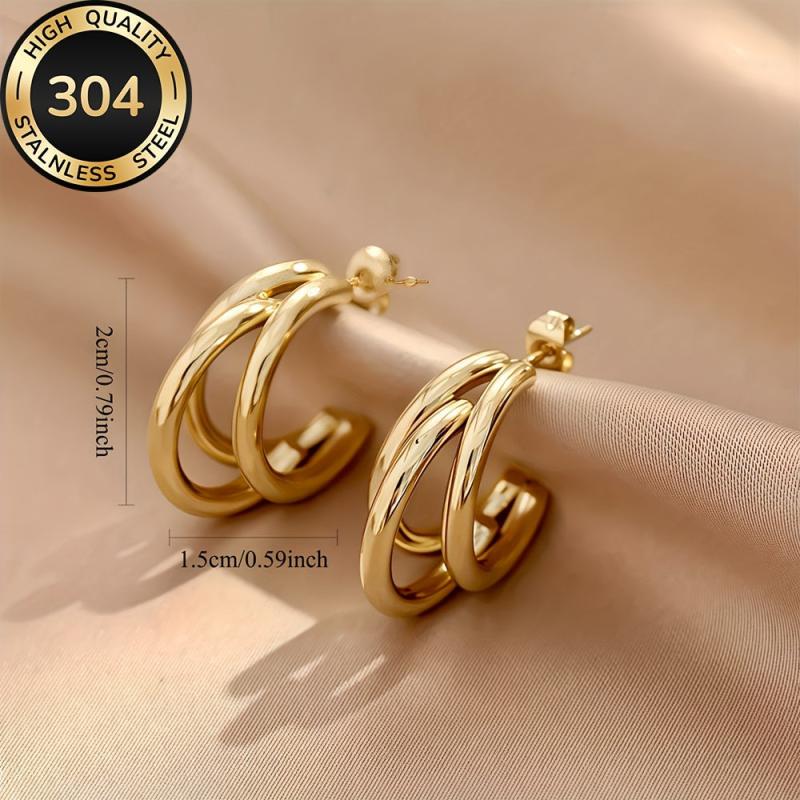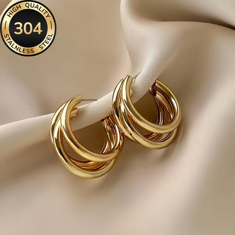 Elegant stainless steel hoop earrings in a beautiful golden color that are hypoallergenic for sensitive ears.