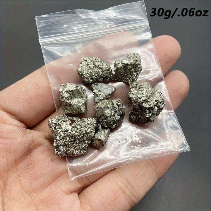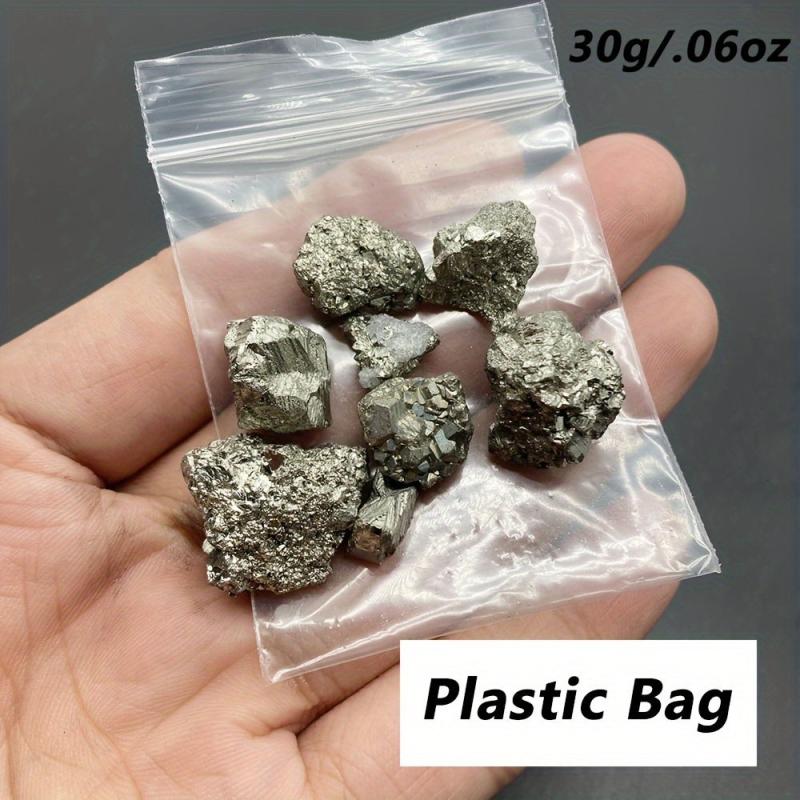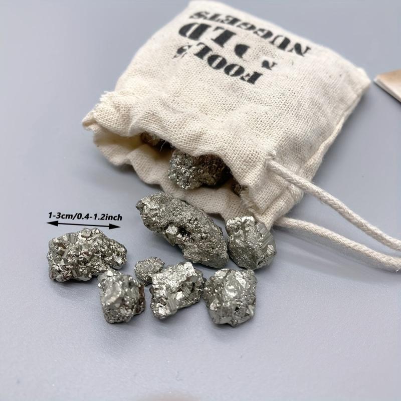 Add sparkle to your collection with this bag of Iron Pyrite raw stones. Each piece is unique and perfect for mineral specimens or decorative purposes.