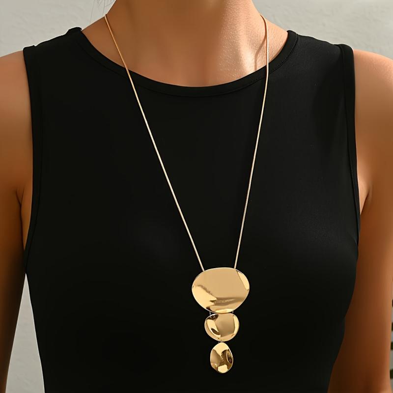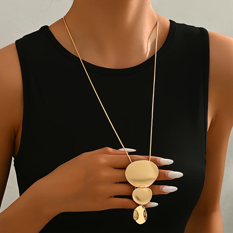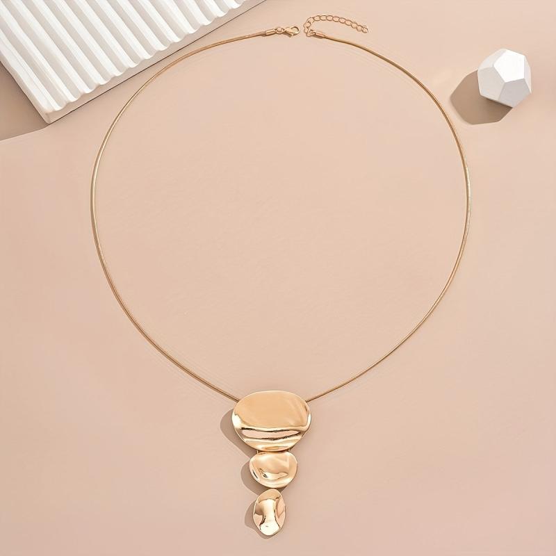 This stylish pendant necklace features an irregular geometric design in a beautiful golden yellow color, adding a touch of elegance and minimalism to your outfit.