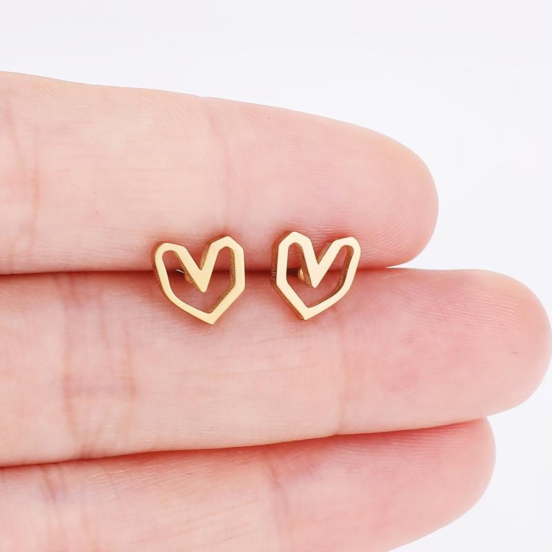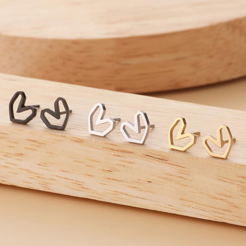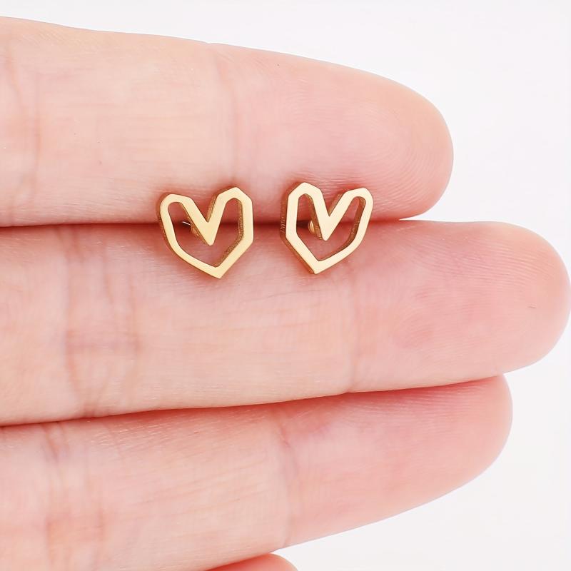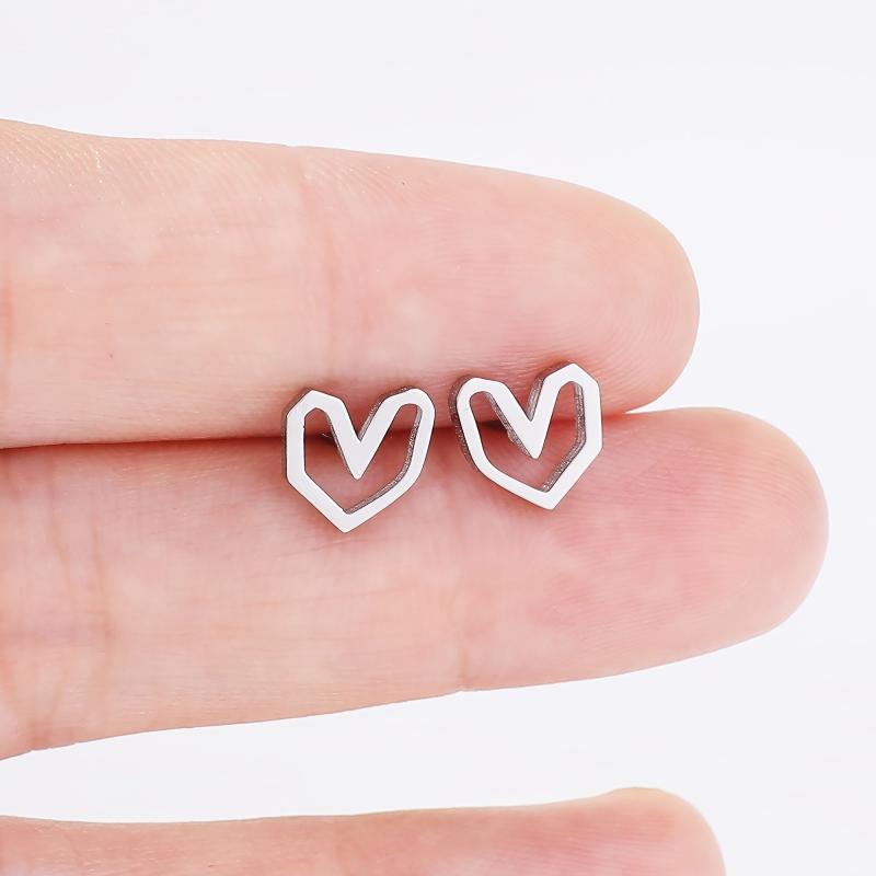 These stylish stud earrings feature a hollow irregular love heart shape design, made of high-quality stainless steel. A perfect addition to any woman's jewelry collection.