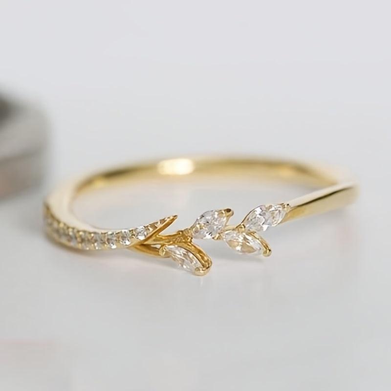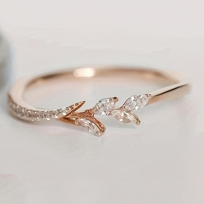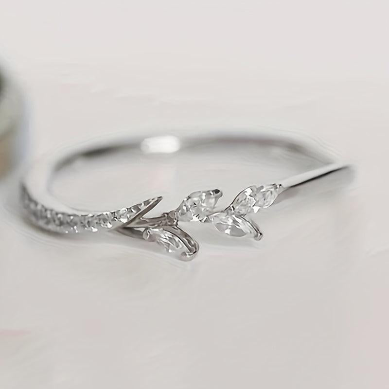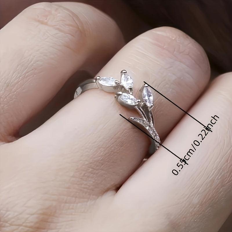 Elegant leaf design ring with synthetic zirconia stones, perfect for weddings, engagements, or casual wear. Makes a great gift for loved ones.