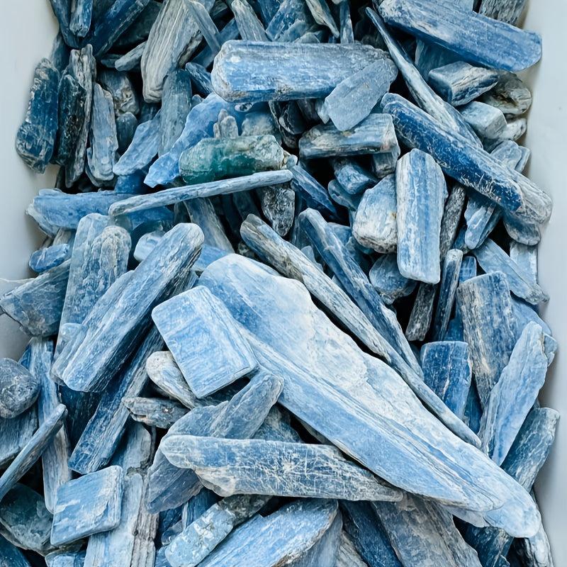 Experience the beauty of raw Kyanite with this unique rough synthetic gemstone material. Perfect for home decor and collecting. Available in 30g, 50g, and 100g sizes.