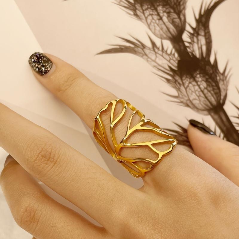 This stunning set features a wide-face leaf design ring and bracelet, perfect for adding a touch of nature-inspired beauty to your outfit.