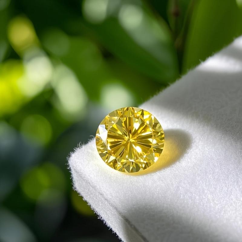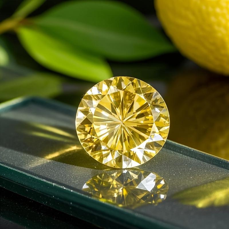 This Lemon Yellow round synthetic moissanite is a brilliant cut alternative for DIY jewelry making. It has VVS1 clarity and is a loose stone.