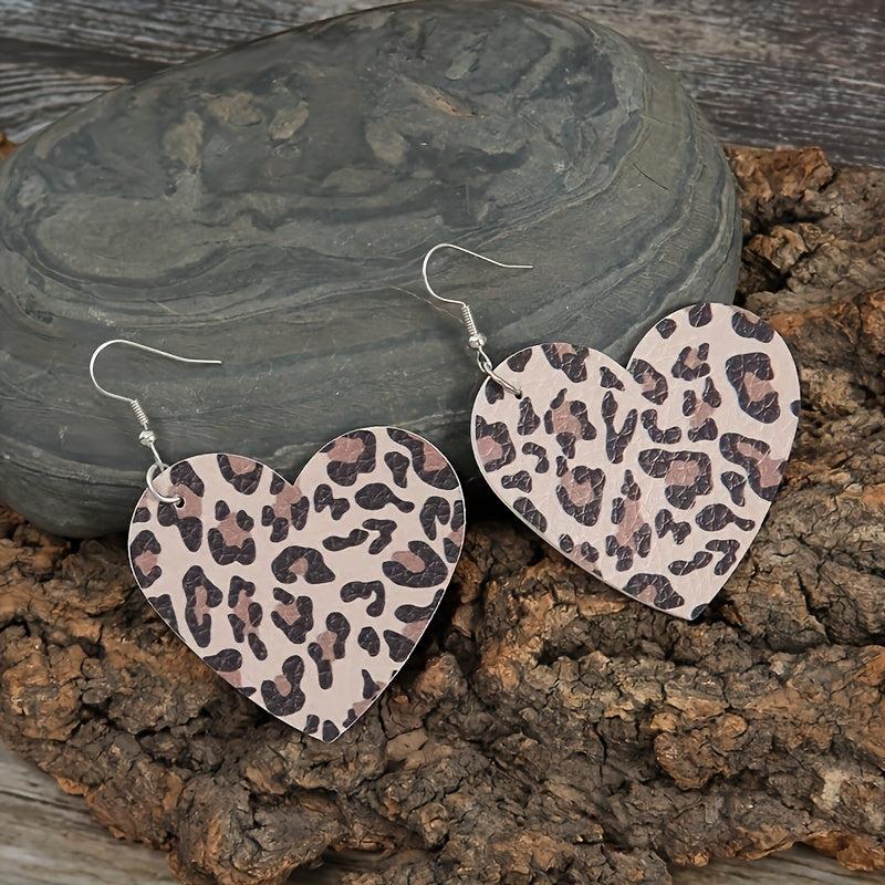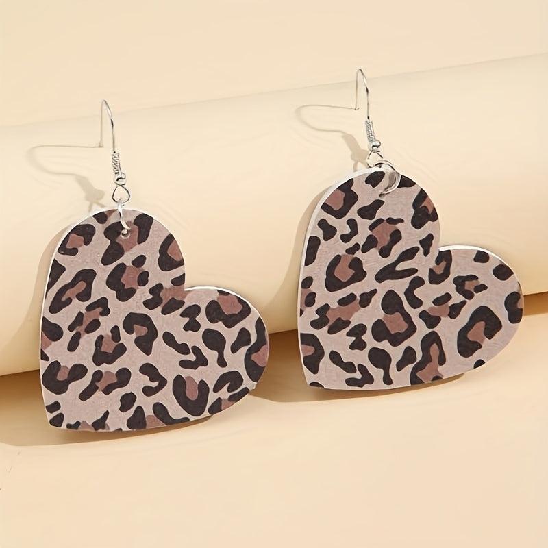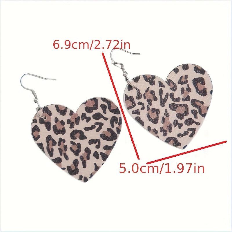 Make a statement with these retro heart-shaped leopard print earrings. Crafted from faux leather with a litchi pattern, these earrings are both bold and sexy.