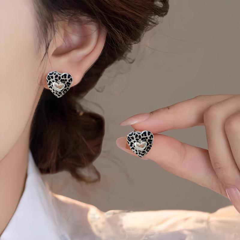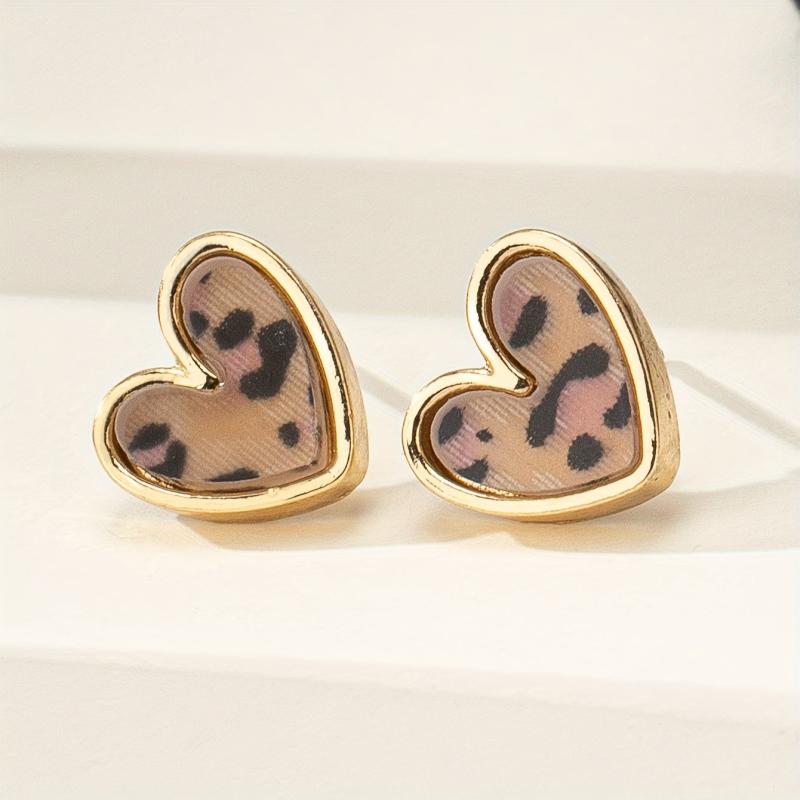 Add a touch of charm with these leopard print heart stud earrings. Made of high-quality alloy, these earrings are perfect for daily wear or parties, making them an ideal gift for someone special.