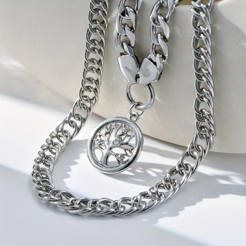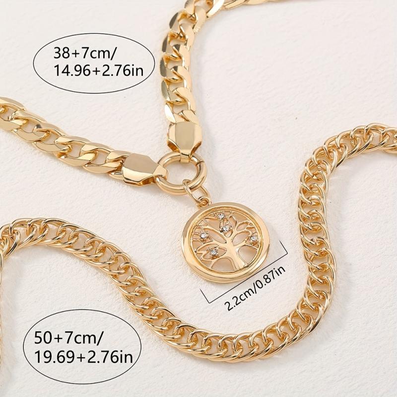 Enhance your style with this 2pcs set featuring inlaid life tree pendant on classic cuban link chain. A perfect gift idea for females.
