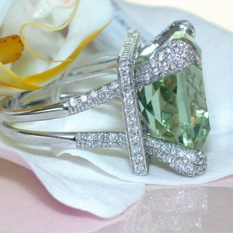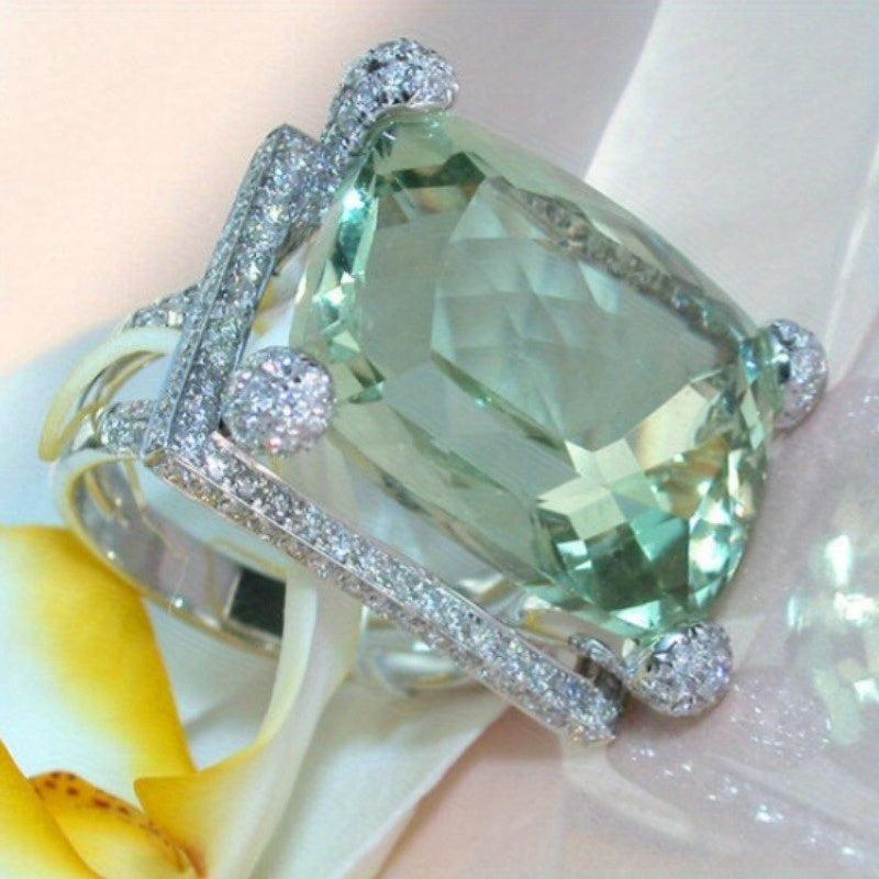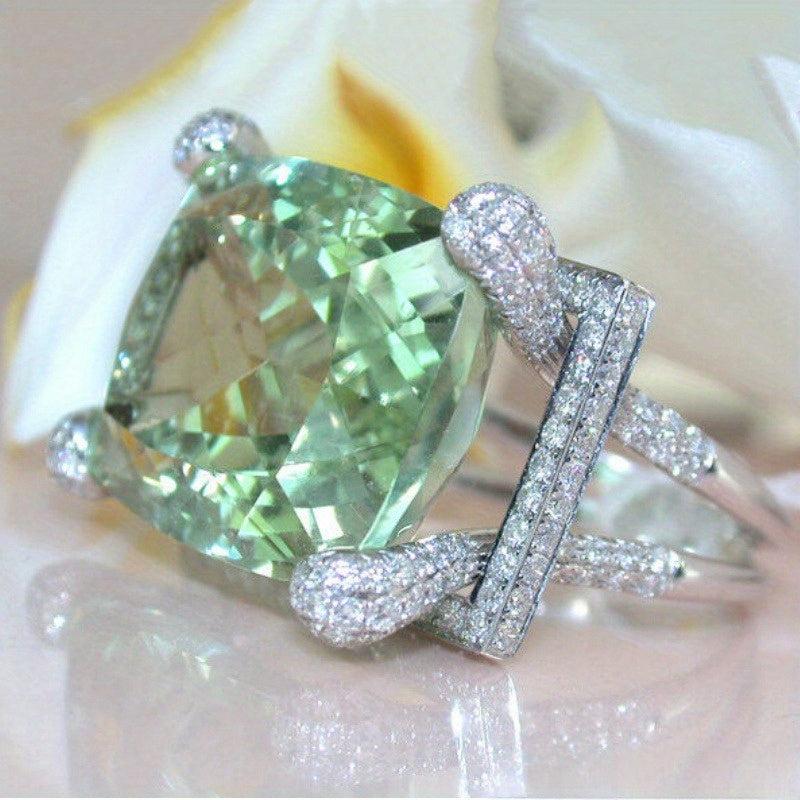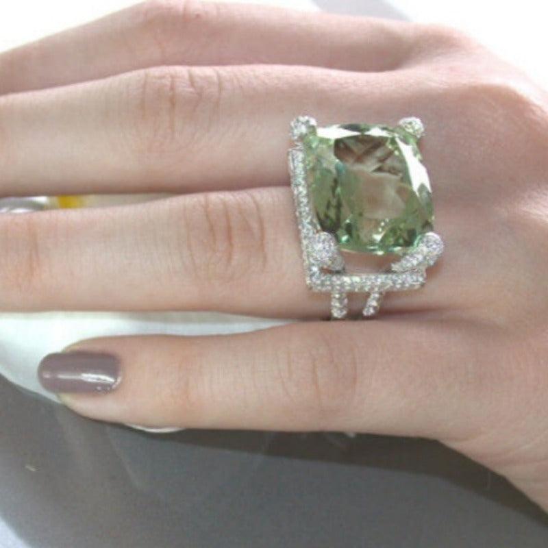 Light Green Cushion Cut CZ Zirconia Cocktail Ring
