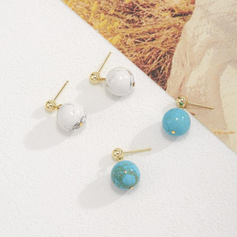These earrings are made of hypoallergenic copper with UV plated synthetic turquoise bead pendant. Perfect for daily wear or vacation occasions.