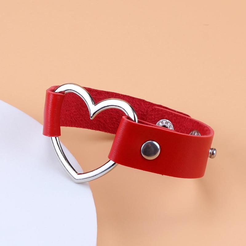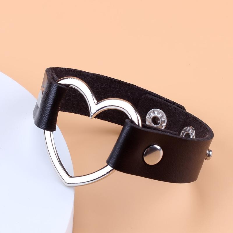 Express your love with this lovely heart-shaped PU leather bracelet. Perfect for adding a touch of romance to your look.