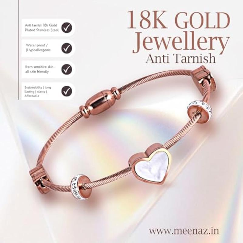 This stylish anti-tarnish bracelet features a magnet lock design, making it easy to wear. The love heart rose kada is a perfect accessory for girls and women.