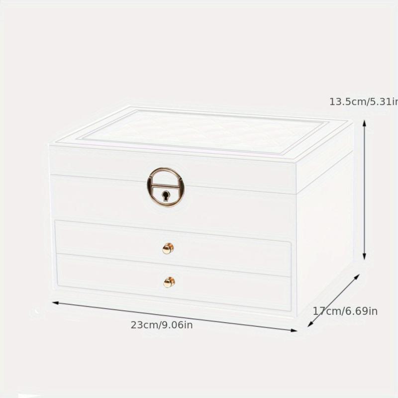 Keep your precious jewelry organized and secure with this high-end storage box. It features a golden leather design with multiple layers for large capacity storage.