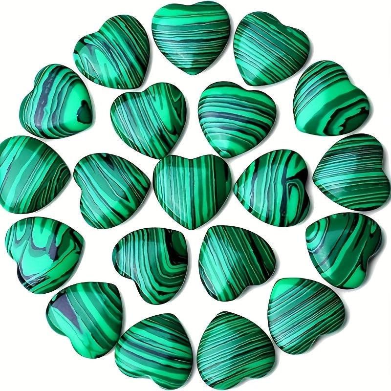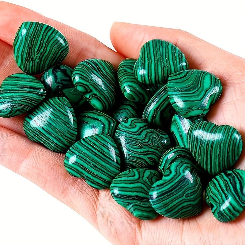 Enhance your collection with this set of 10 Malachite heart shaped crystal stones. Perfect for jewelry making, chakra balancing, decoration, and more.