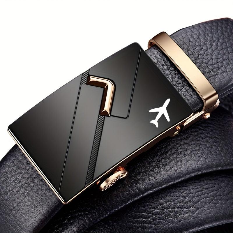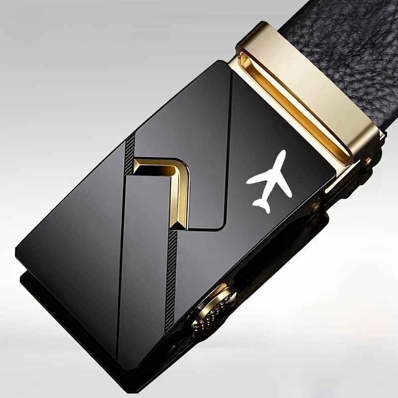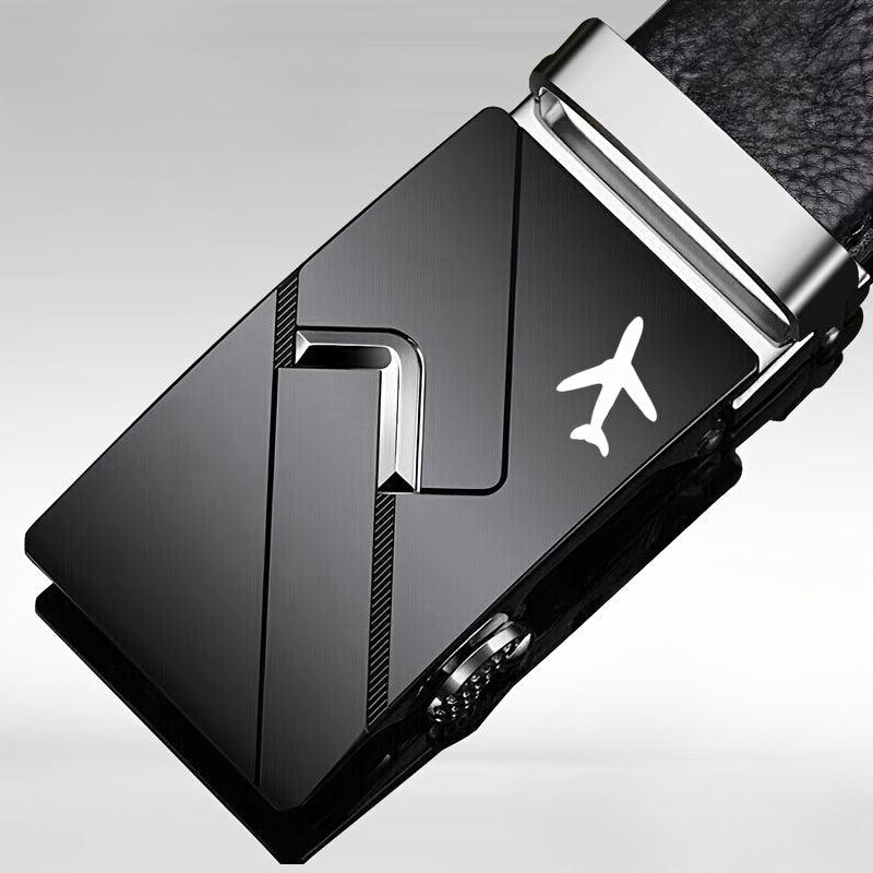 This sleek PVC belt features a durable alloy buckle with an airplane pattern design, making it perfect for casual or business wear. Ideal for everyday commute and professional occasions.