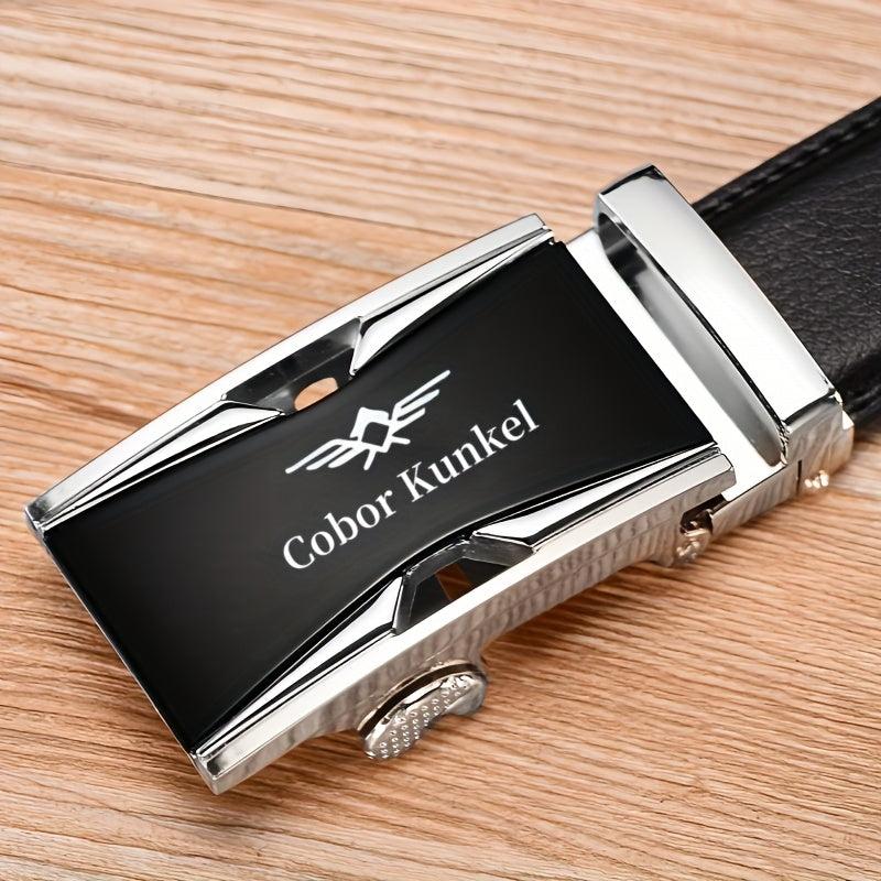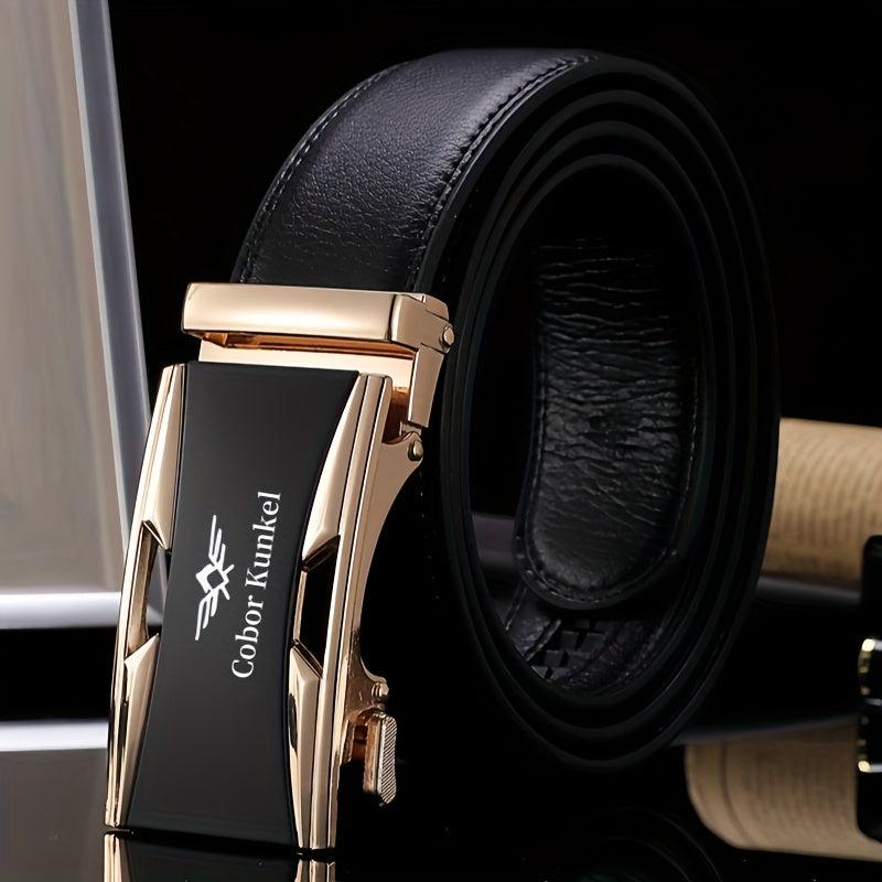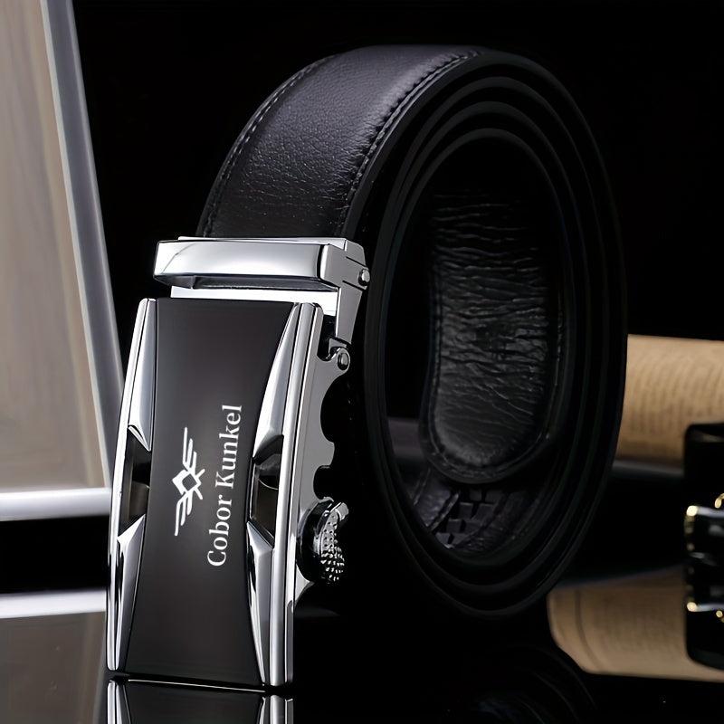 Durable faux leather belt with automatic alloy buckle, perfect for casual and formal attire. Available in standard size.