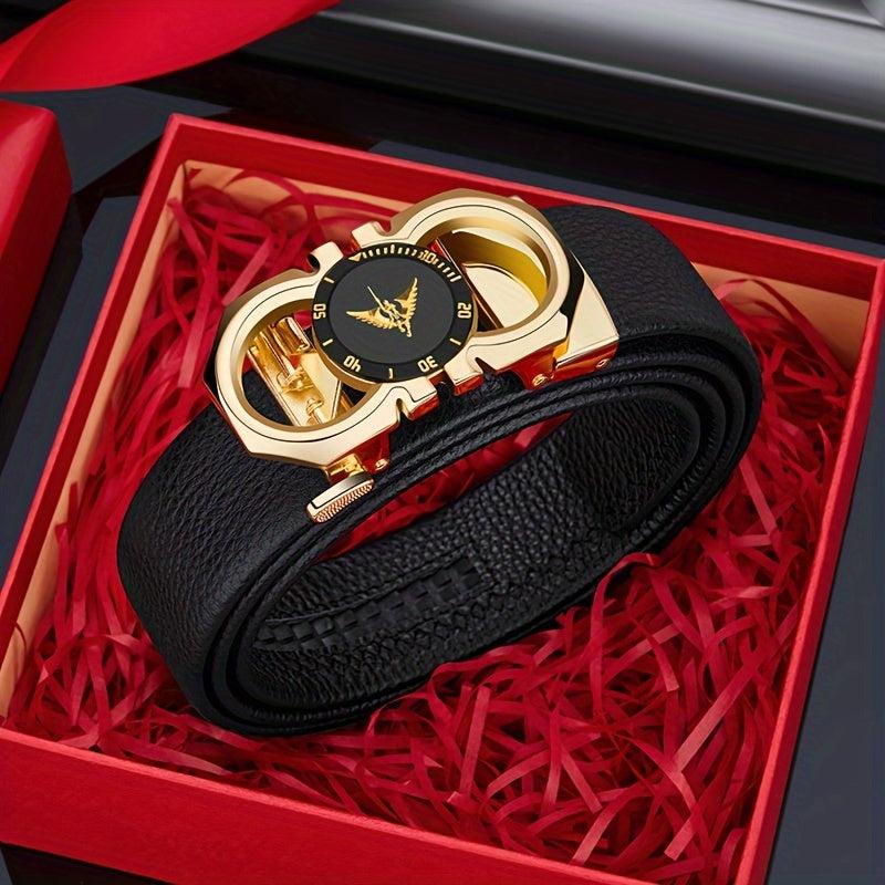 This stylish men's belt is made of high-quality cowhide leather with an automatic buckle.
