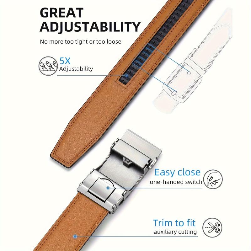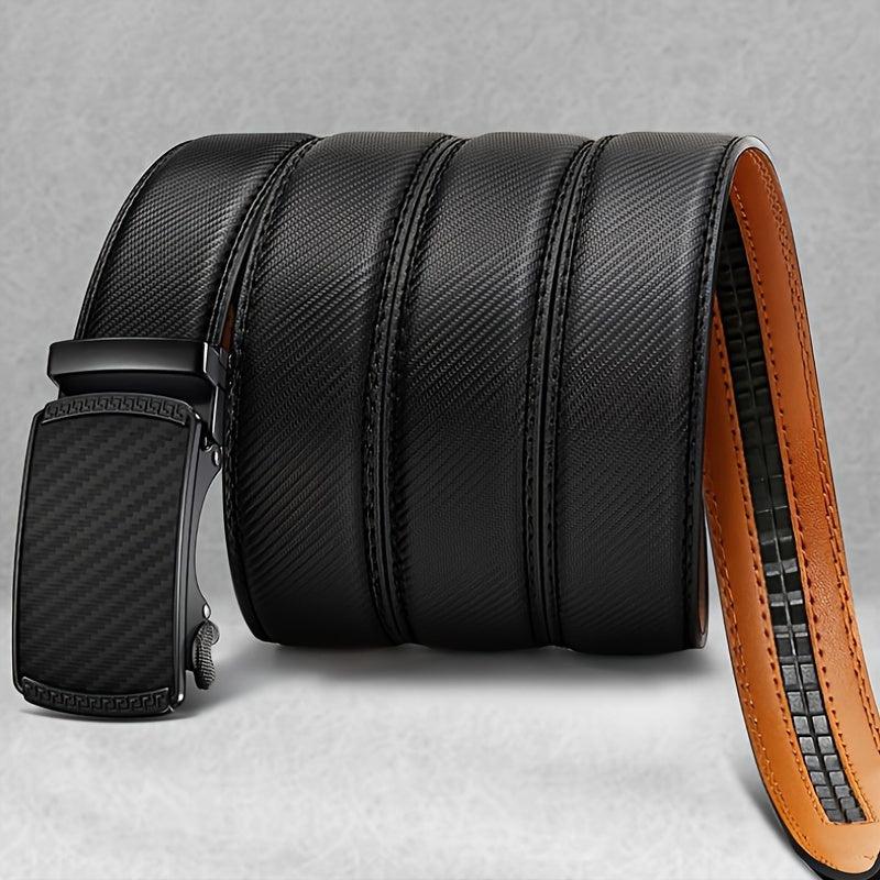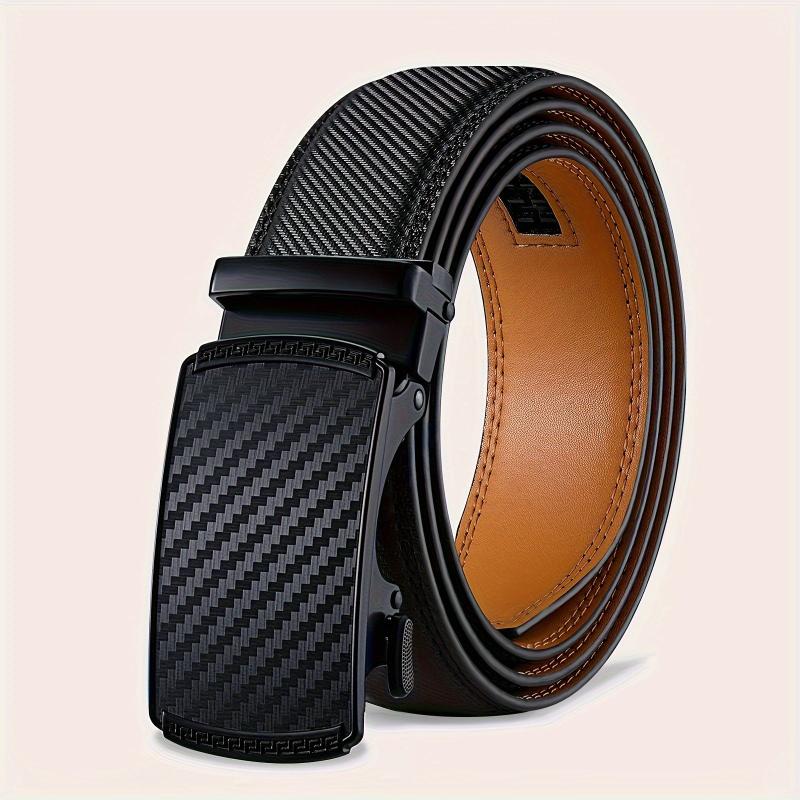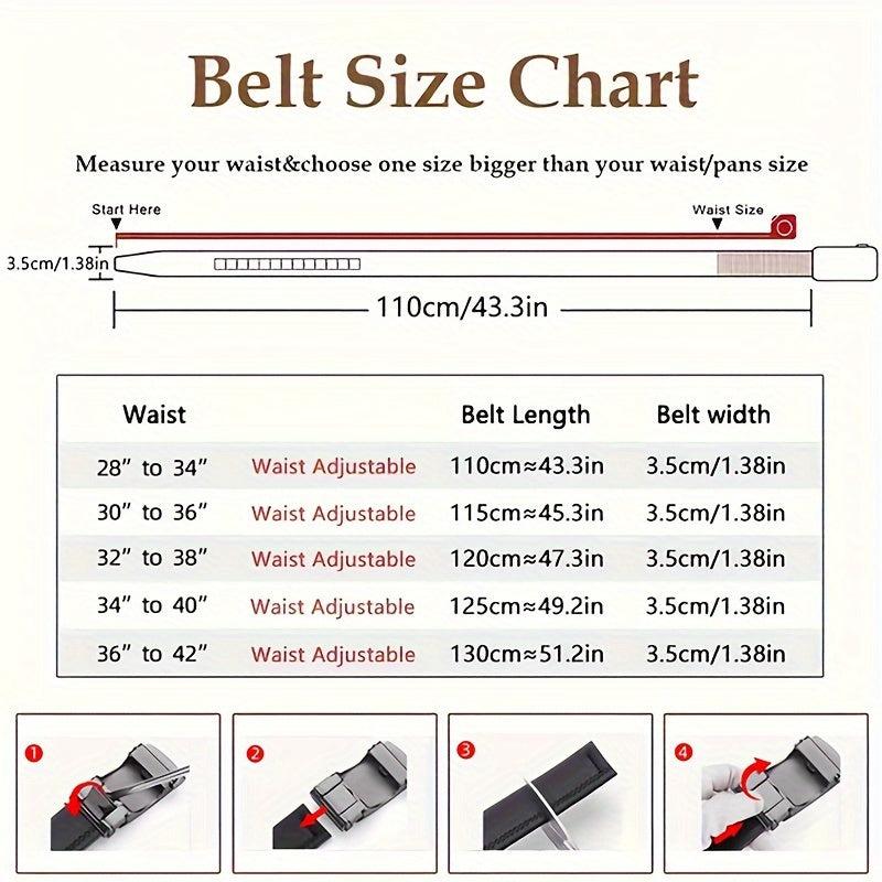 This men's leather belt features an automatic buckle with a stylish alloy design. It is 35mm in width and adjustable for a comfortable fit.