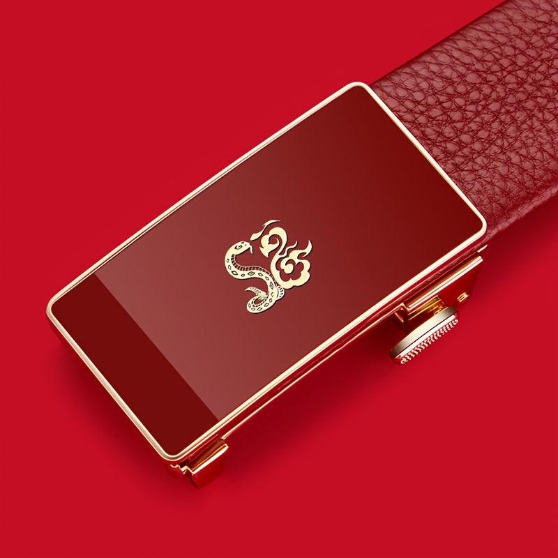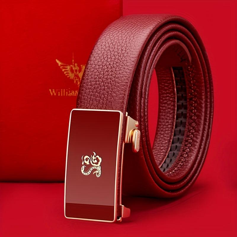 This men's leather belt with automatic buckle is suitable for business and casual occasions. It makes a great gift for stylish men.