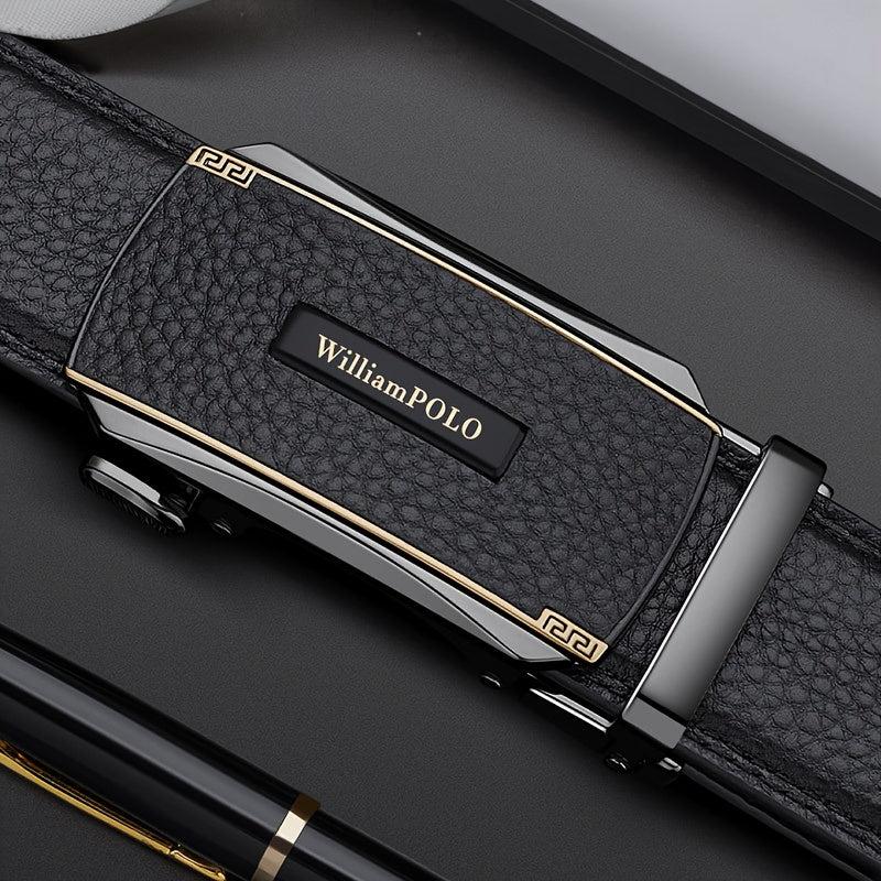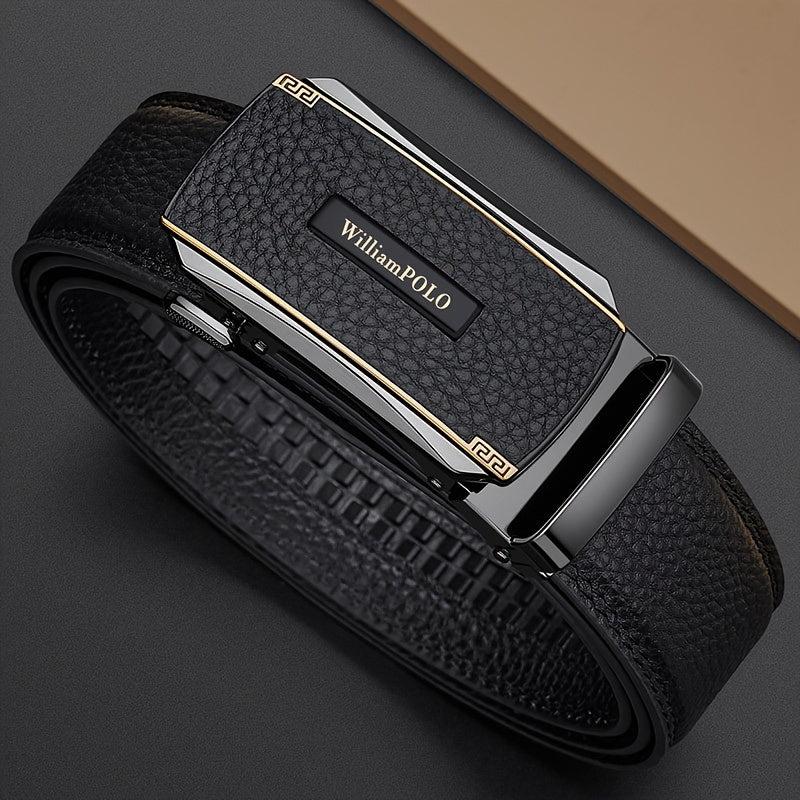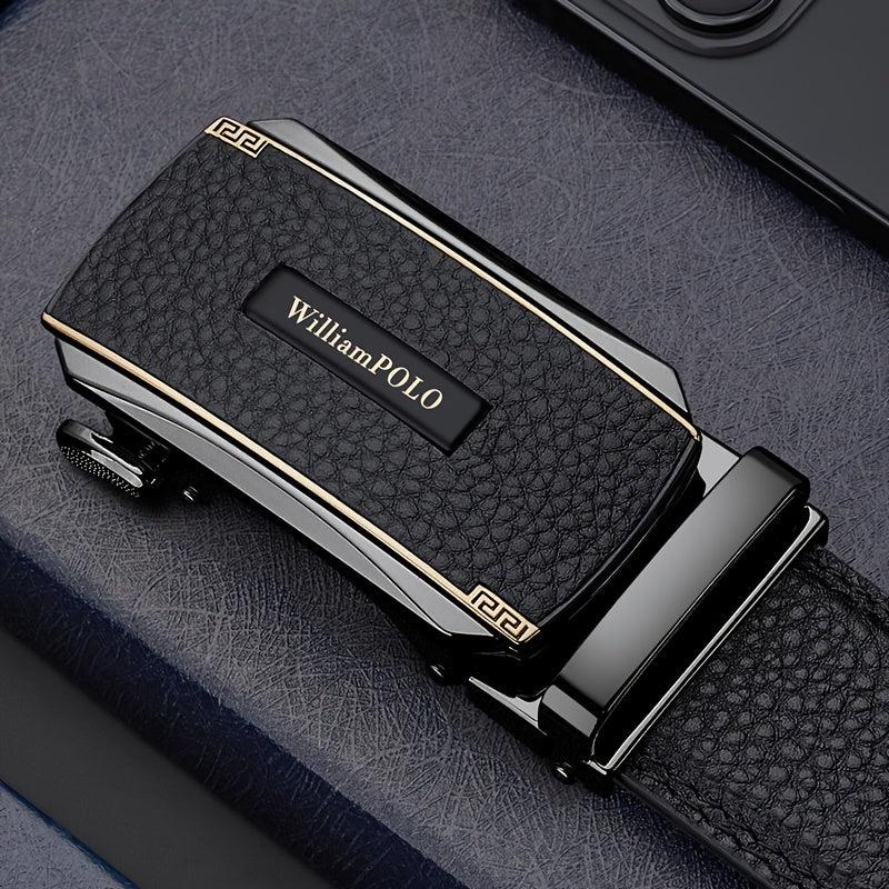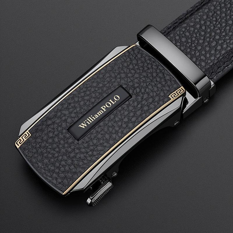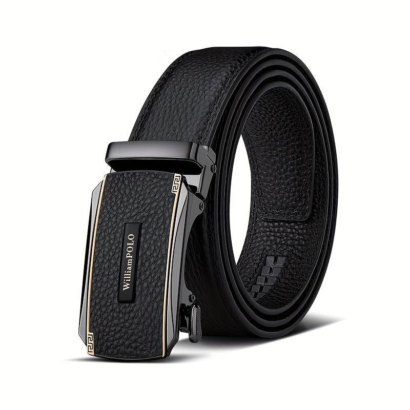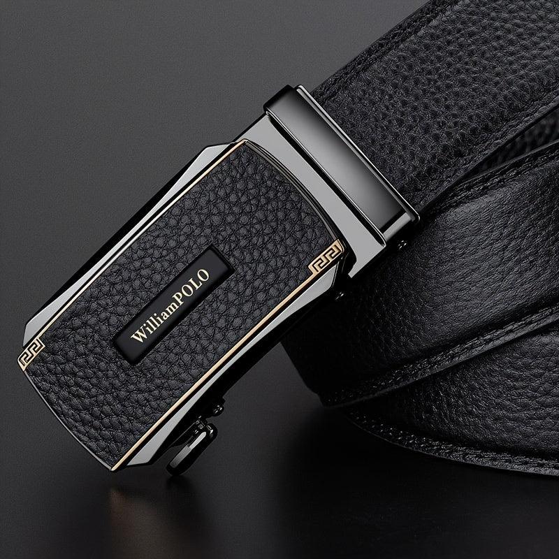 This men's leather belt is made of top layer cowhide and features an automatic alloy buckle. Ideal for jeans and dress pants, it's a versatile accessory perfect for business or casual wear. Makes a great gift for husbands.