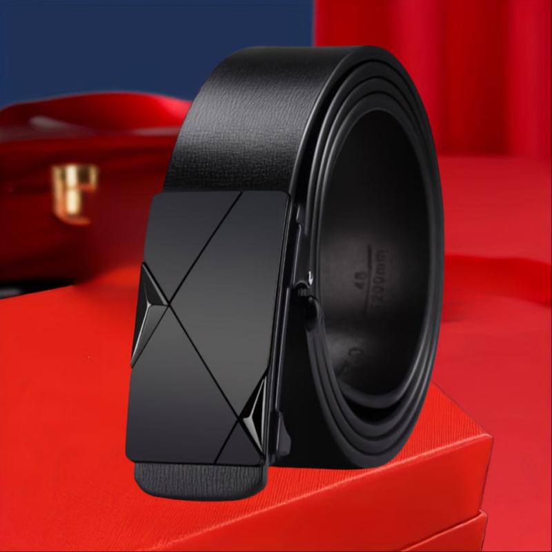 Men's Leather Business Casual Belt with Automatic Buckle Geometric Pattern