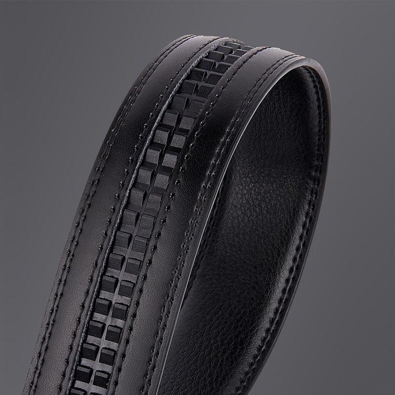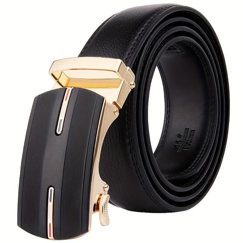This men's leather cowhide belt features a convenient sliding design with automatic buckle for easy adjustment. It is a classic belt suitable for work, business, and casual occasions.