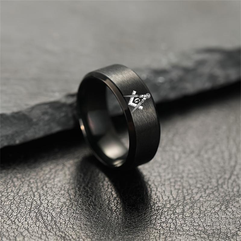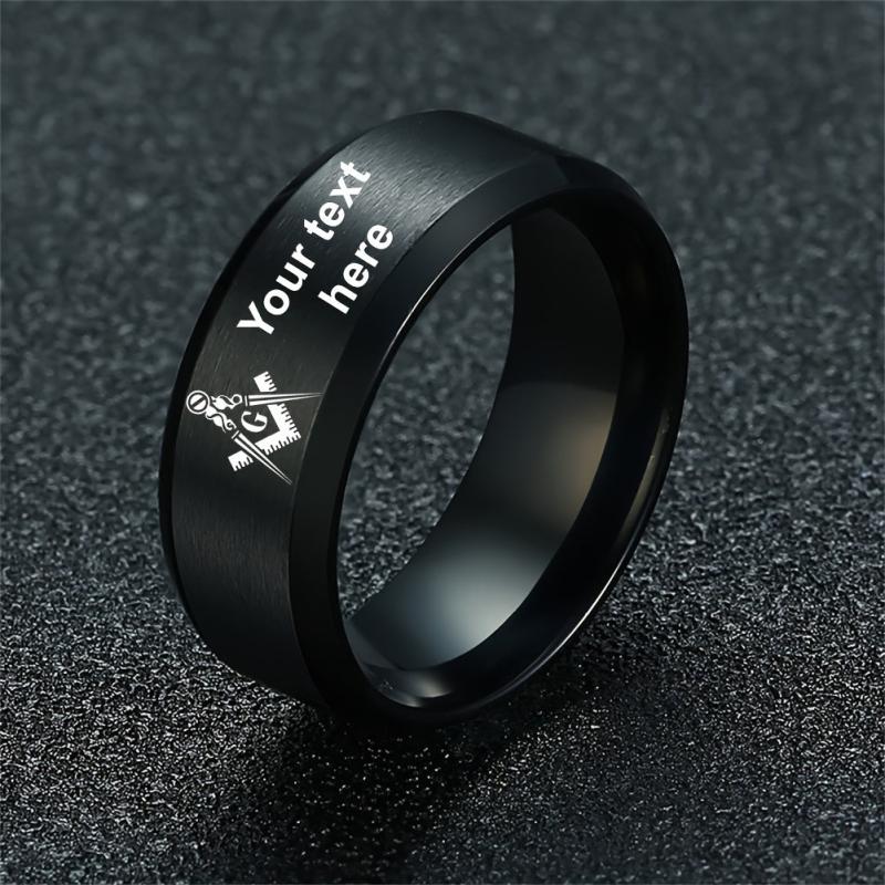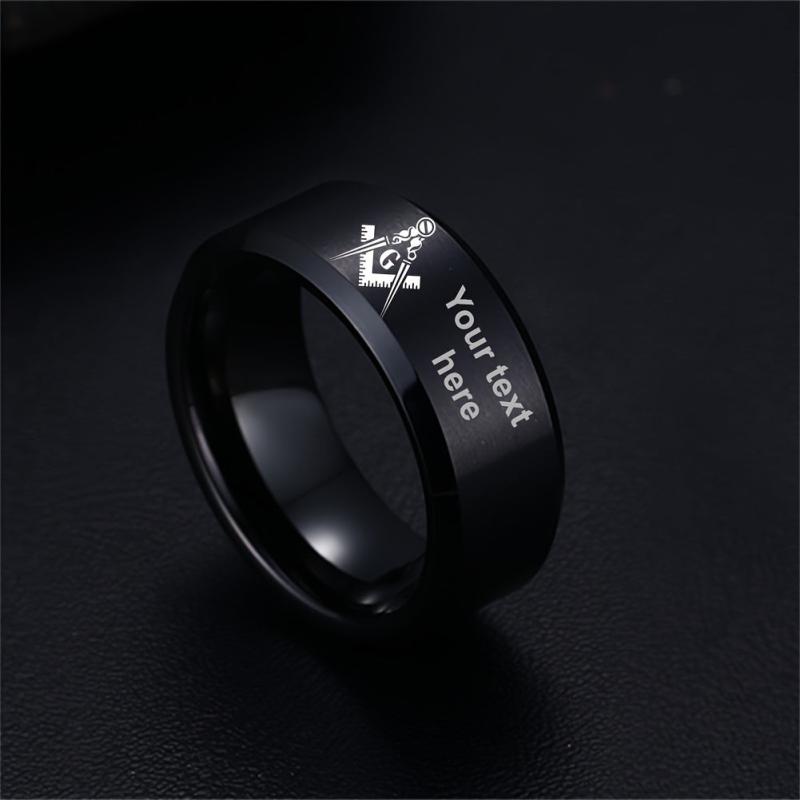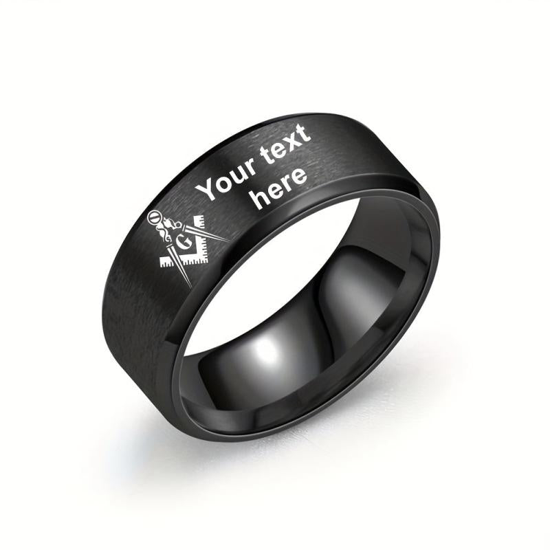 This custom stainless steel ring features a Masonic design and can be personalized with your chosen name. A perfect accessory for Freemasons.