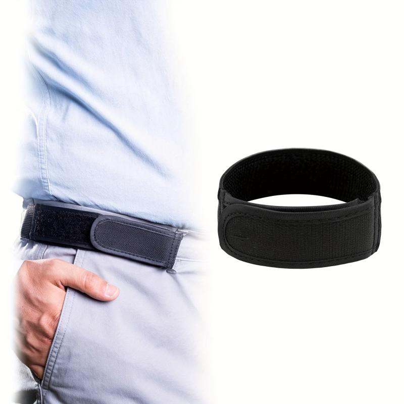 This convenient nylon belt features an elastic design with a single edge closure. Perfect for casual attire, this versatile accessory is adjustable for a comfortable fit.